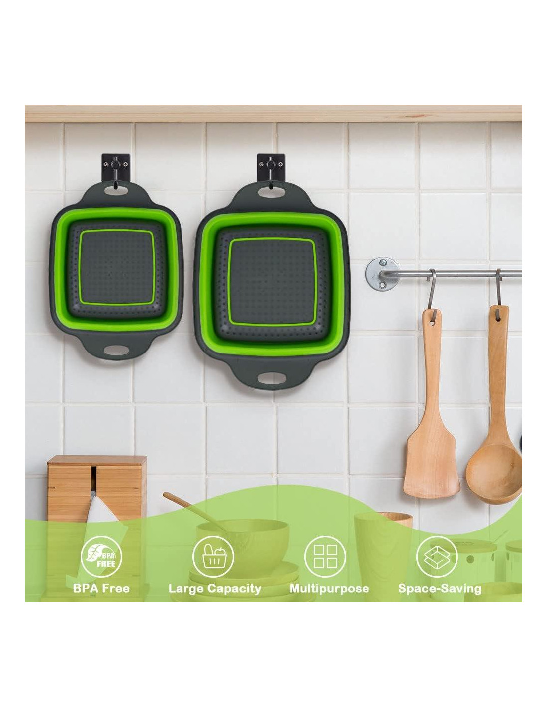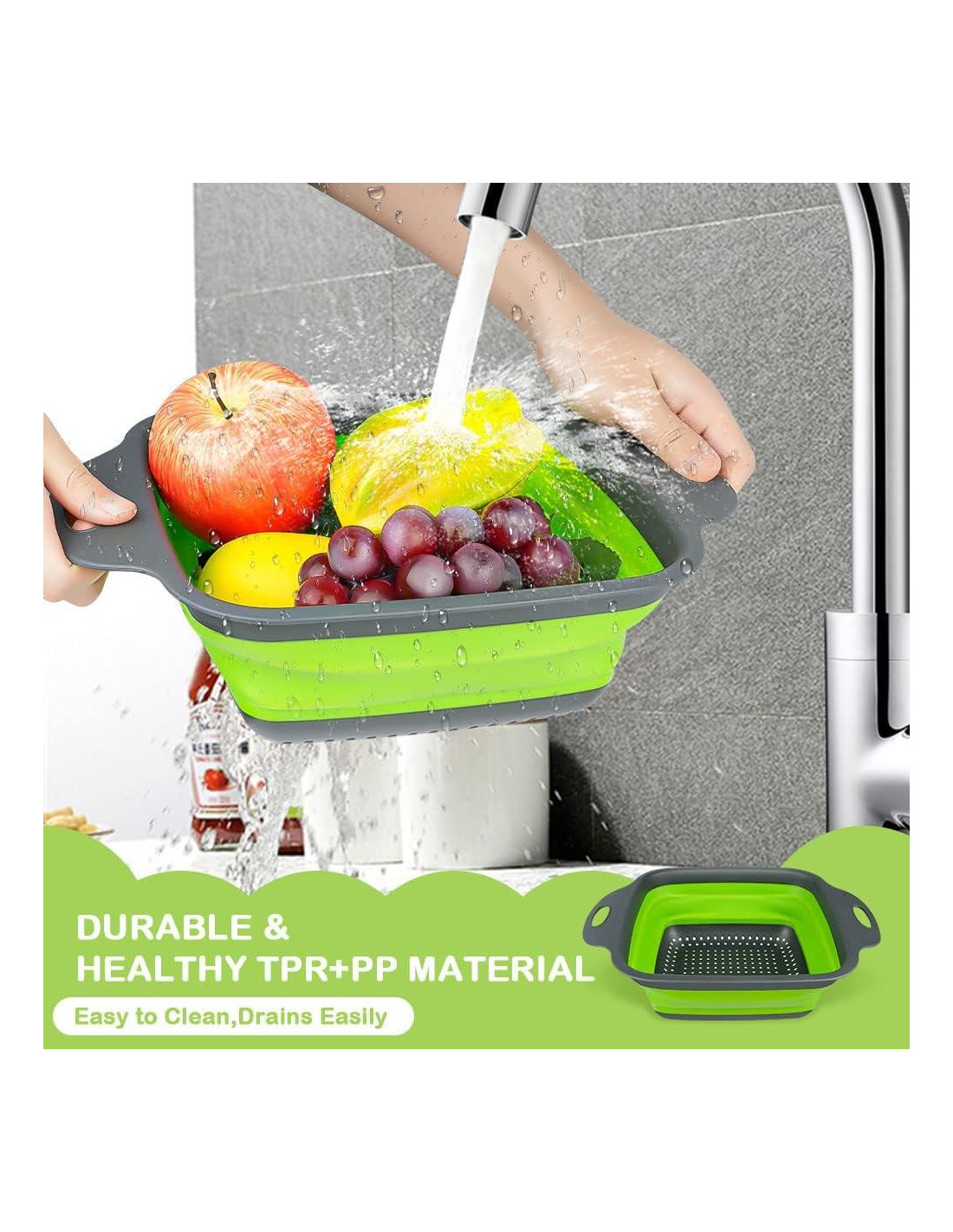 - FÁCIL DE LIMPIAR: Colador de diseño plegable con mangos dobles de plástico, fácil de sostener al limpiar alimentos, proporcionando una sensación de mano cómoda. Es adecuado para lavar y filtrar verduras, frutas, pasta y otros alimentos. La canasta de drenaje plegable se puede abrir fácilmente cuando sea necesario y se puede plegar después de su uso, lo que es conveniente para colgar y almacenar para facilitar el secado y evitar la posibilidad de crecimiento bacteriano.