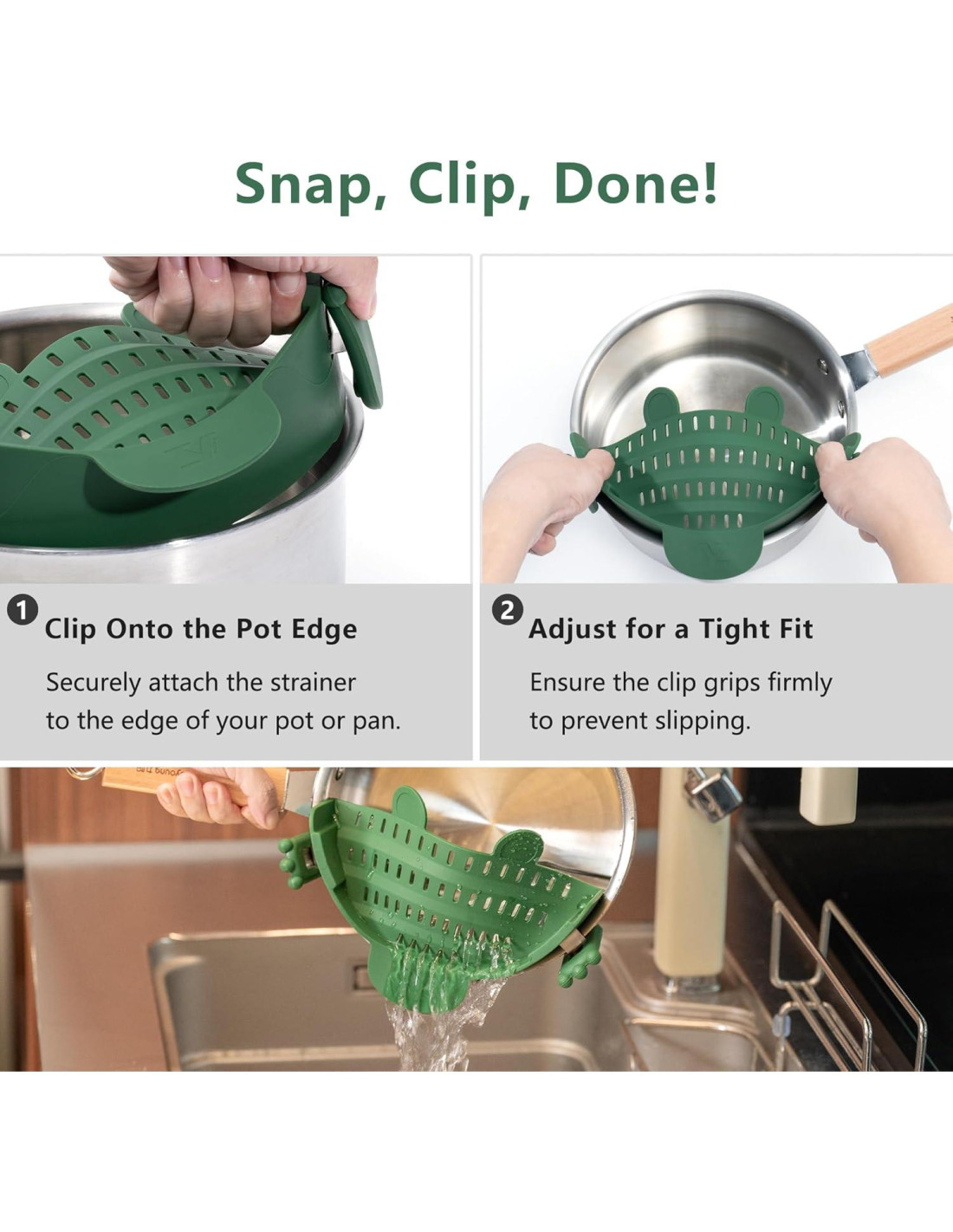 - Amplia Aplicación: Este colador de silicona con clip adopta un diseño ergonómico, que te permite fijarlo fácilmente en la mayoría de los utensilios de cocina, como sartenes, ollas o tazones de varios tamaños. Es muy adecuado como regalo para ancianos, amas de casa, amigos, chefs