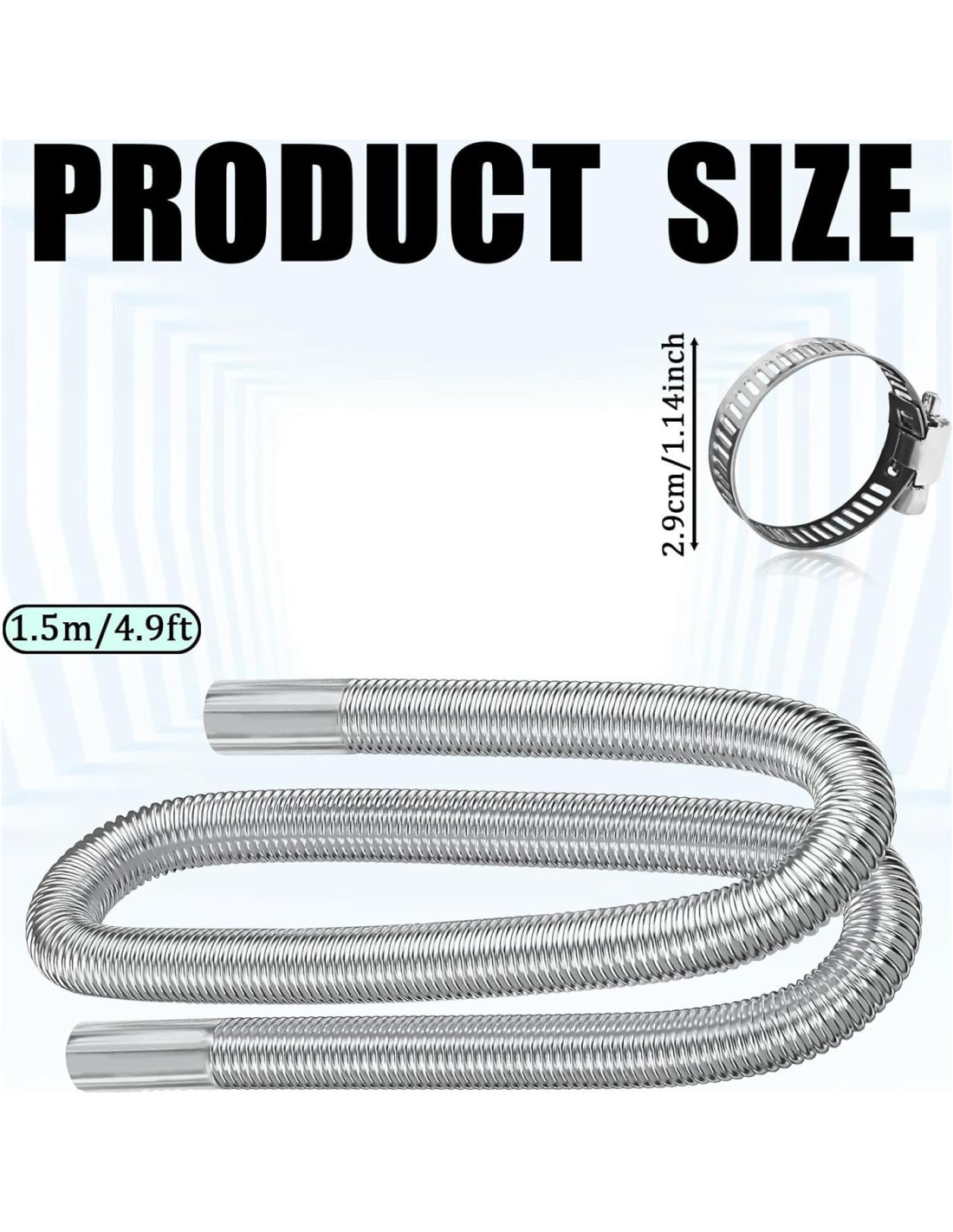 KUQUTIDY 59" Tubería de Escape para Calentador Diésel, Tubería de Escape Flexible con 2 Abrazaderas, Accesorios para Calentador Diésel de Acero Inoxidable de 1" ID, Kit de Manguera de Escape de Tubería Flexible Universal para Calentador de Aire Diésel