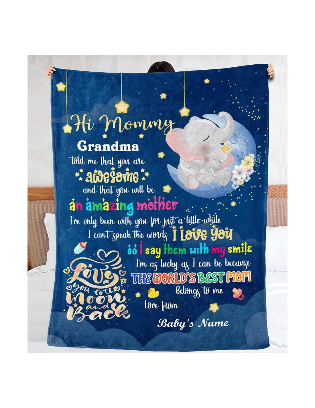 Manta Personalizada para Nueva Mamá de Bebé Hola Mamá Abuela Me Dijo Que Elefante 1er Día de la Madre Linda Durmiendo Nombre Personalizado Regalos de Embarazo Manta de Forro Polar Sherpa para Cumpleaños Día de las Madres