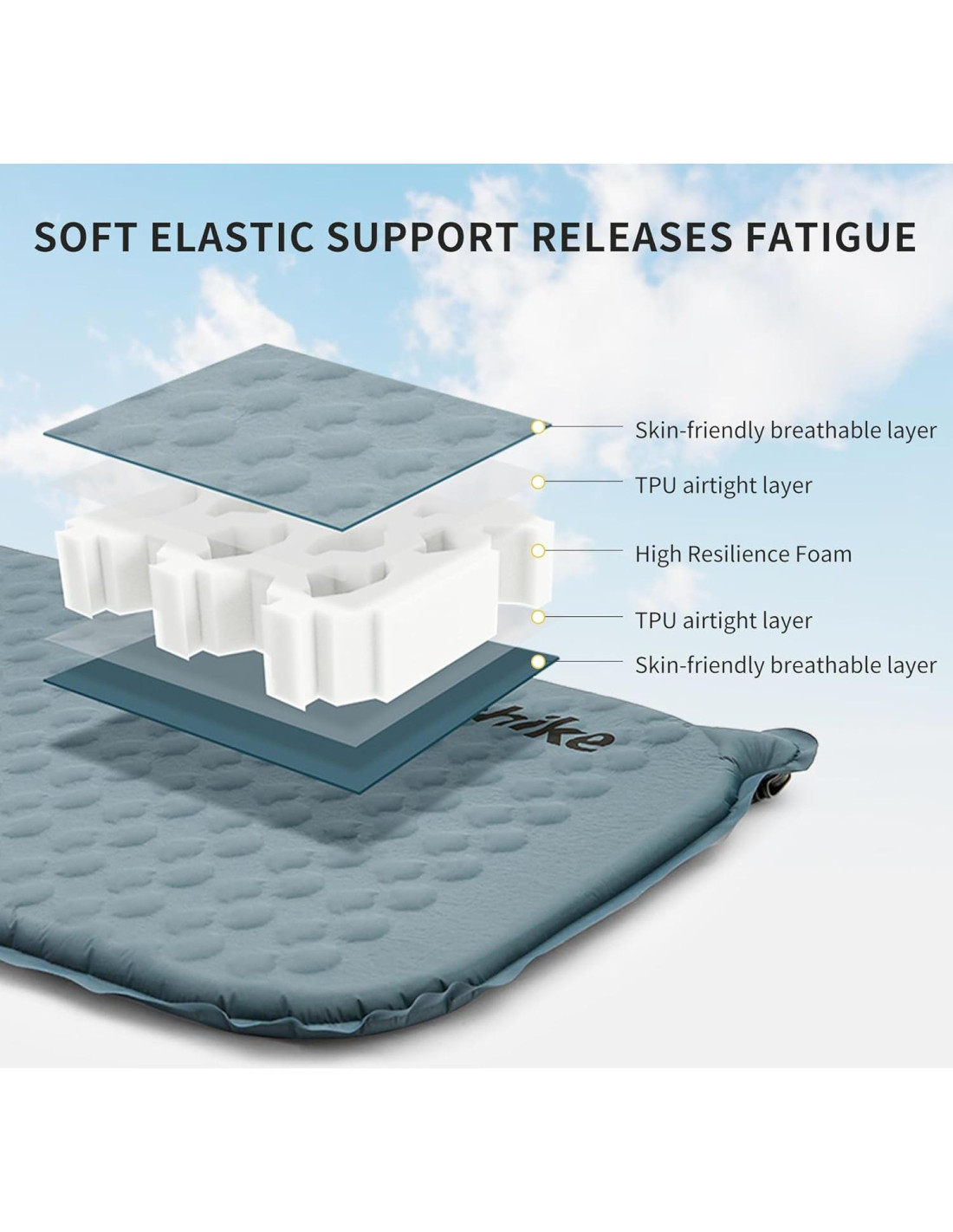 - [SOPORTE ELÁSTICO SUAVE] Hecho de esponja de alta densidad, suave y elástica sin colapsar, brindándote una experiencia de descanso cómoda. Capa superior e inferior de dos capas transpirables amigables con la piel y capa hermética de TPU, el centro de la esponja de alta resiliencia. Cálido, suave, aísla del suelo