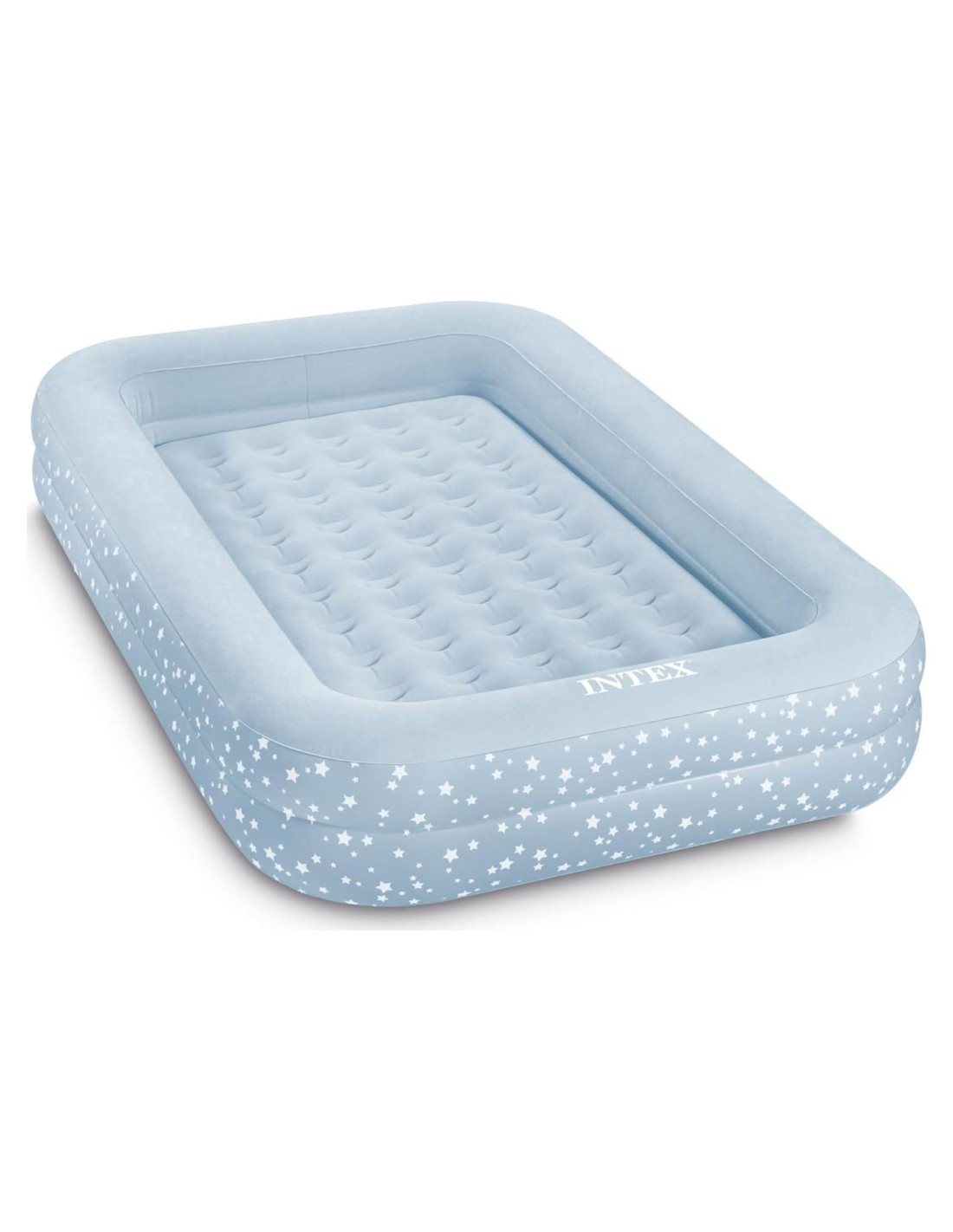 El Juego de Cama Inflable para Niños de INTEX seguramente pondrá una sonrisa en la cara de cualquier niño. Recomendado para edades de 3 a 6 años y hasta 22.68kg, a los niños les encantará acurrucarse con este adorable diseño de estrellas impresas y mantenerse cómodos toda la noche. Diseñado con un material de superficie suave y una estructura de soporte doble, esta es la cama perfecta para llevar a cualquier lugar para viajes, pijamadas y camping. Esta cama es ultra amigable para los niños, incluyendo un colchón interno ligero y desmontable y viene con una bomba de mano que hace que inflar sea rápido y fácil.