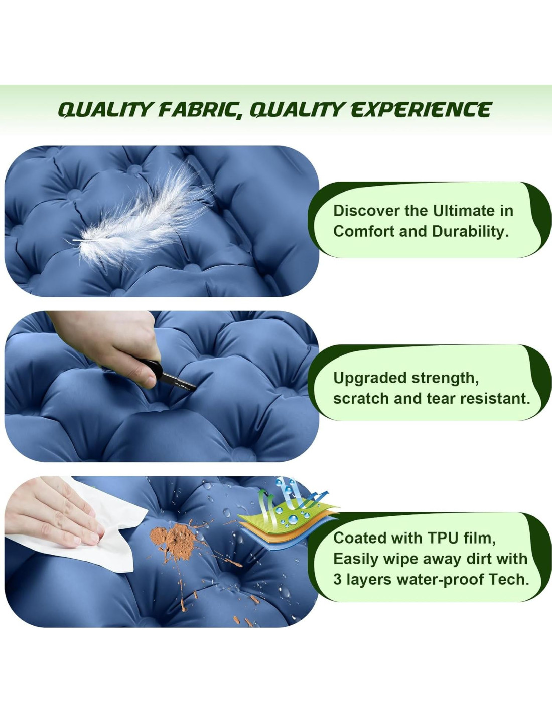 - Inflado Rápido y Desinflado en un Segundo: El colchón de aire para camping con bomba de pie incorporada infla la colchoneta en solo 40 segundos sin herramientas adicionales. Cuando es hora de empacar, desinfla en un segundo con la válvula de liberación rápida.