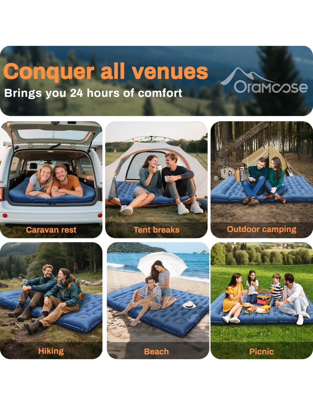 - Colchoneta multipropósito, compañero integral para dormir: La multifuncionalidad de las colchonetas de camping para dormir te permite enfrentar todo tipo de lugares de descanso con facilidad, ya sea un tapete de almuerzo en el auto, una siesta en el patio trasero, un cojín de asiento a prueba de humedad para picnics, senderismo al aire libre, una colchoneta para dormir en una tienda, o incluso una cama temporal para invitados, lo que te brindará una experiencia cómoda, y es un elemento esencial para acampar e incluso el mejor regalo para alguien.
