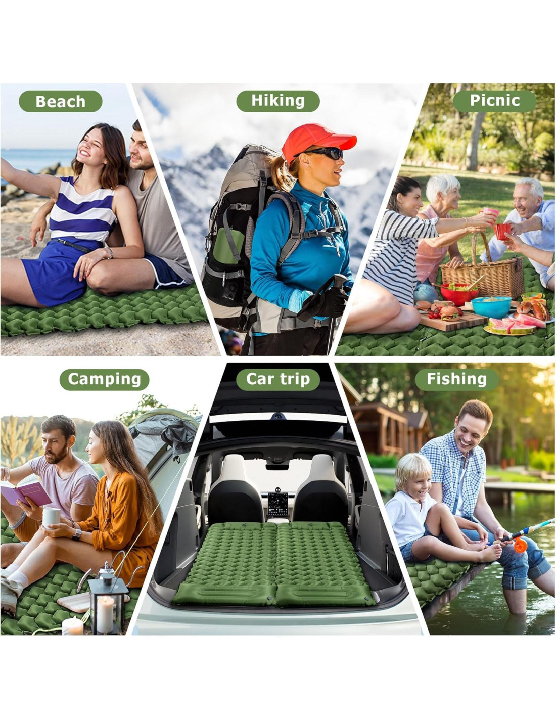 - [Consigue Una Más para Cama Individual] : Ambos lados de esta colchoneta de camping tienen botones de conexión, permitiéndote unir dos colchonetas en una cama doble - perfecta para compartir la experiencia al aire libre. Es una opción inteligente ya sea que necesites espacio adicional para dormir en tu tienda o en un campamento. Además, diferentes colores de este colchón de aire para camping combinados añaden un toque divertido y estiloso a tu equipo.