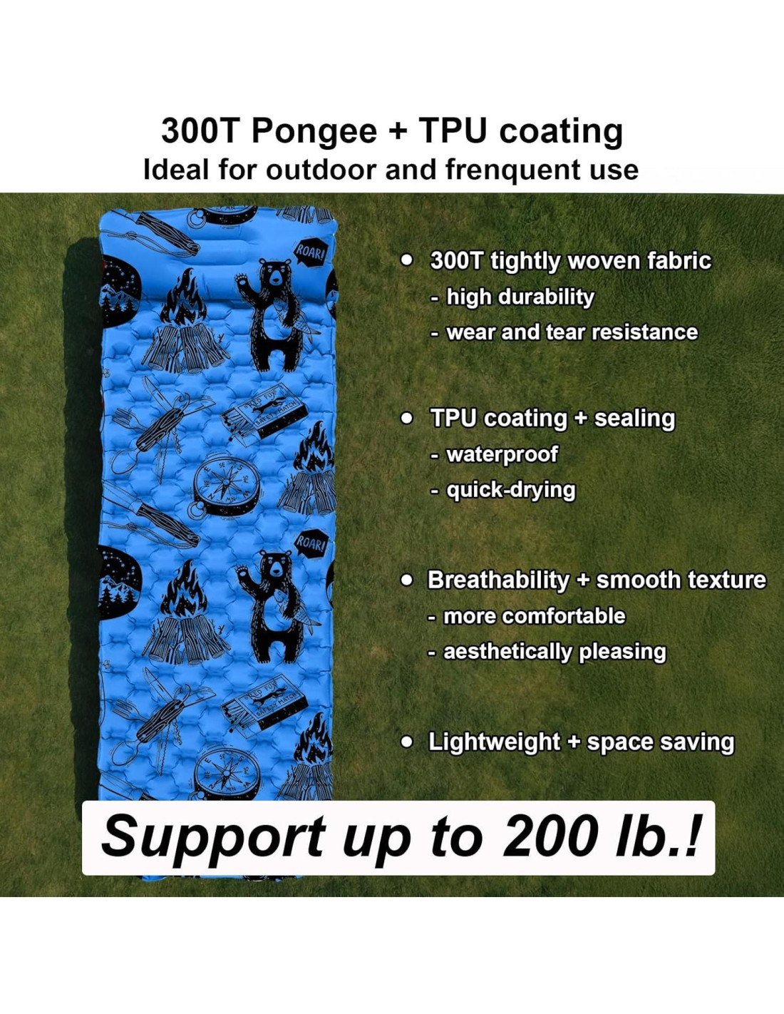 - Bomba de pie incorporada. ¡Nuestra bomba de pie incorporada hace que inflar esta colchoneta para niños sea muy fácil! Simplemente pise la bomba y la colchoneta se infla completamente en segundos. ¡No más preocupaciones sobre si su hijo tiene dificultades para inflarla con la boca o necesita una bomba de aire!