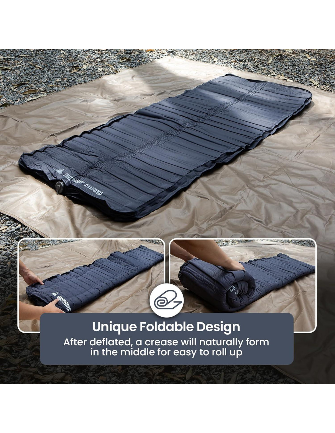 - Rebote Extra: El colchón tiene 3" (7.6cm) de grosor, con un borde reforzado y relleno de espuma sólida para un rebote extra que proporciona a los campistas un sueño de 5 estrellas; este diseño también genera menos ruido cuando el durmiente se mueve por la noche