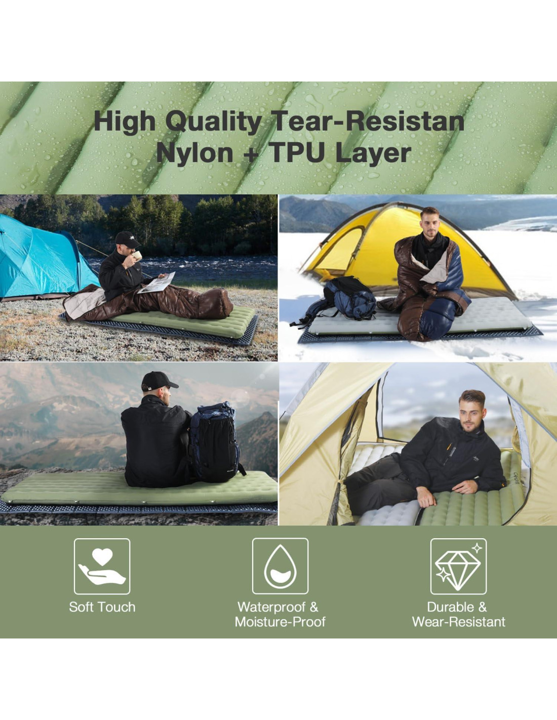 - [Material Ultra-Ligero Duradero y Resistente al Agua] La colchoneta de dormir ultraligera está hecha de material de grado exterior resistente, nylon 20D y recubrimiento de sellado TPU, por lo que es resistente al agua y duradera. La estructura de interruptor patentada elimina la fuga de aire y tiene un alto rendimiento de sellado, que es mejor que los interruptores en el mercado. Resistente a desgarros y fácil de limpiar para cualquier entorno al aire libre.