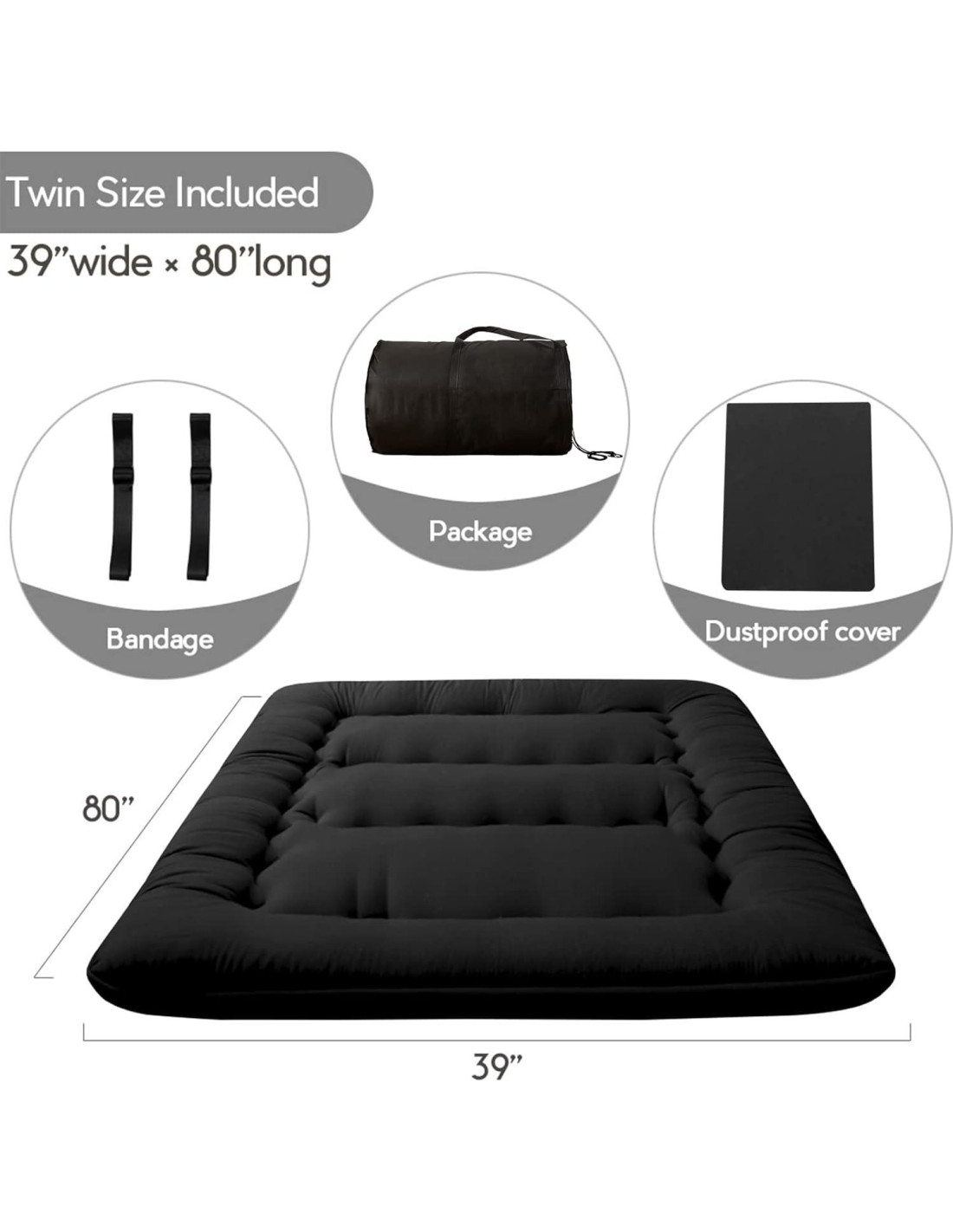 - QUÉ INCLUYE EL PAQUETE: Al comprar 1 colchón futón, obtienes 1 funda a prueba de polvo del mismo color, 1 par de vendajes, 1 bolsa de almacenamiento. Con la funda a prueba de polvo, ya no tendrás que preocuparte por la limpieza del colchón, lo que puede mejorar enormemente la durabilidad del colchón. Para un mejor almacenamiento y transporte, el colchón está equipado con correas y una bolsa de almacenamiento.