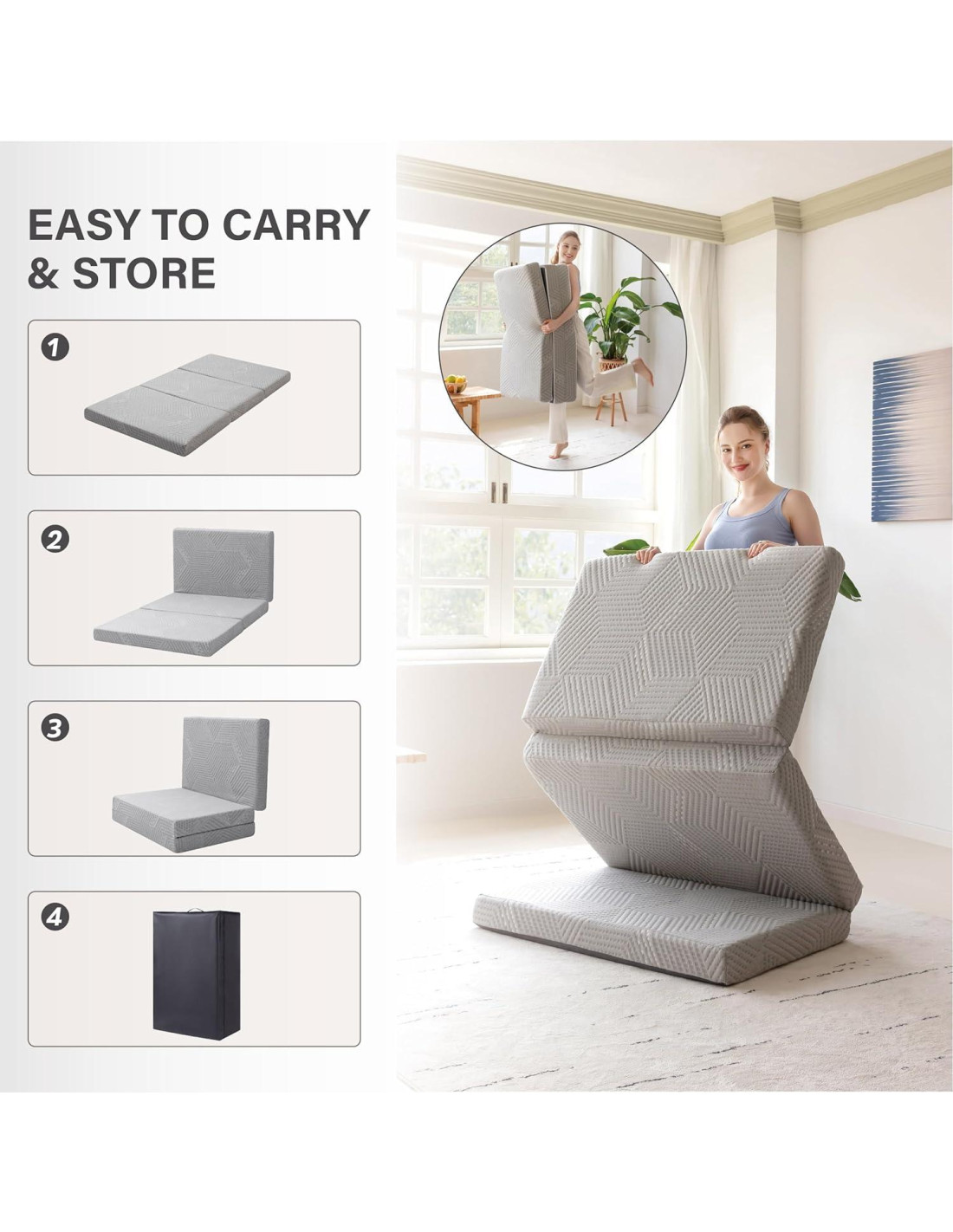 - Fácil de Usar y Almacenar: Está compuesta por tres piezas separadas de colchón de espuma viscoelástica, lo que es muy conveniente para mover y llevar. Se despliega o pliega en segundos. Cuando no está en uso, se coloca fácilmente en un espacio pequeño como armarios para almacenamiento.