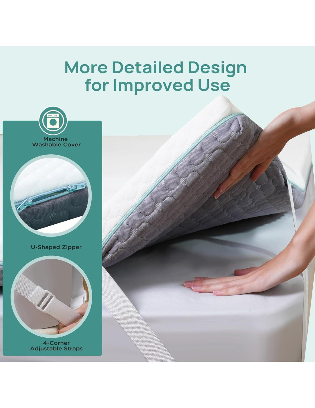 - [Funda Lavable y Transpirable de 2 Lados] Nuestra innovadora funda de doble cara ofrece más opciones para combinar. Hecha de tela amigable con la piel y transpirable certificada por OKEO-TEX. El lado gris oscuro es resistente a la suciedad mientras que el lado blanco es versátil. Con un cierre de cremallera de 3 lados para fácil remoción y lavado, y 4 correas ajustables en las esquinas para asegurar el colchón. Puedes elegir libremente qué lado del núcleo emparejar con tu funda preferida para un sueño refrescante