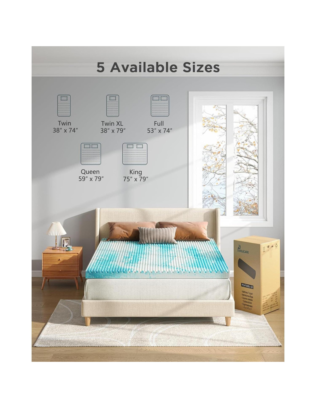 - Opciones Múltiples de Tamaño y Grosor: Disponible en 5 tamaños de cama (twin, twin xl, full, queen y king) y 2 opciones de grosor (5 cm y 7.5 cm), el colchón de espuma de huevo PERLECARE se puede comprar para adaptarse a tu dormitorio, caravana, sofá o RV. Ya sea que necesites extender la vida de un colchón viejo o añadir suavidad a uno firme, puedes mejorar la comodidad del sueño en cualquier espacio.