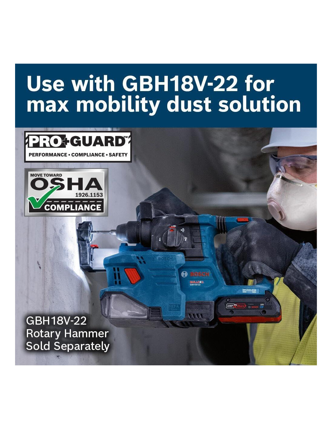 - DISEÑO DE EXTRACTOR DE POLVO MÓVIL: Diseñado para ofrecer máxima movilidad utilizado con el martillo rotativo Bosch 18V GBH18V-22 Bulldog