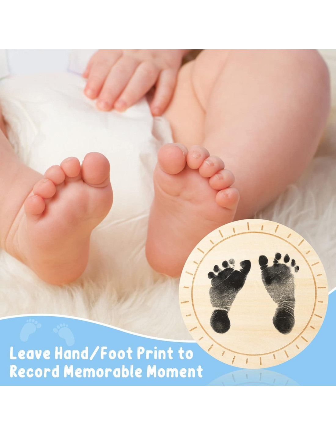 - Almohadilla de Tinta: Diseñada para crear las huellas de manos y pies de tu bebé sin dejar residuos de tinta en las manos y pies de tu bebé. Nuestras almohadillas de tinta de toque limpio utilizan un método de impresión de 'tinta no tocada' para permitir un hermoso estampado de las manos y pies de tu bebé en nuestro cartel de anuncio de nacimiento. Y aseguramos que las tintas que usamos en nuestra almohadilla de tinta para bebés están probadas en laboratorio y certificadas como 100% seguras para tu bebé.