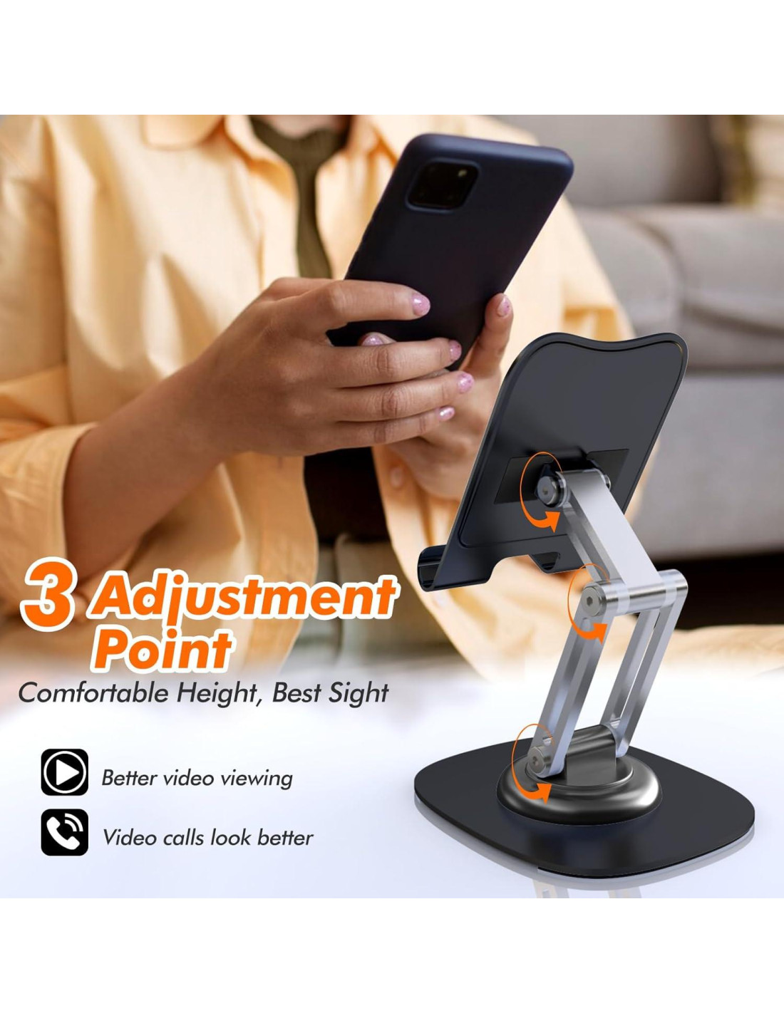 - Ergonómico y Rotatorio: Este soporte para teléfono tiene un eje de rotación de 360 grados conectado a la base, que se puede ajustar fácilmente en altura y ángulo, permitiéndote girar tu teléfono a cualquier ángulo. Se puede colocar fácilmente en su lugar, perfecto para el trabajo y el hogar.