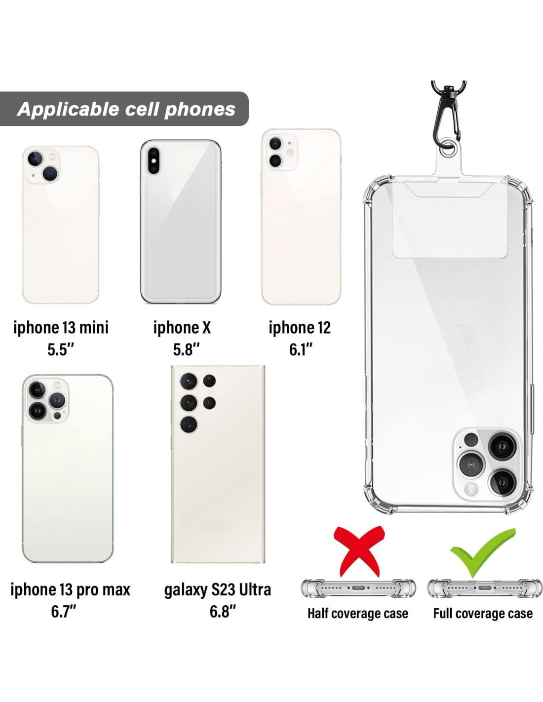 - [Cuerda para Teléfono 2 en 1] El soporte universal para teléfono 2 en 1 mantiene tus manos libres y accesibles en todo momento. La correa de silicona flexible se adapta a la mayoría de los teléfonos celulares de 4.7 a 7.1 pulgadas (11,94 a 18,03 cm). El ancla para teléfono ultra delgada se coloca entre tu teléfono y la funda del teléfono y se conecta a la cuerda a través del puerto de carga de la funda de tu teléfono.