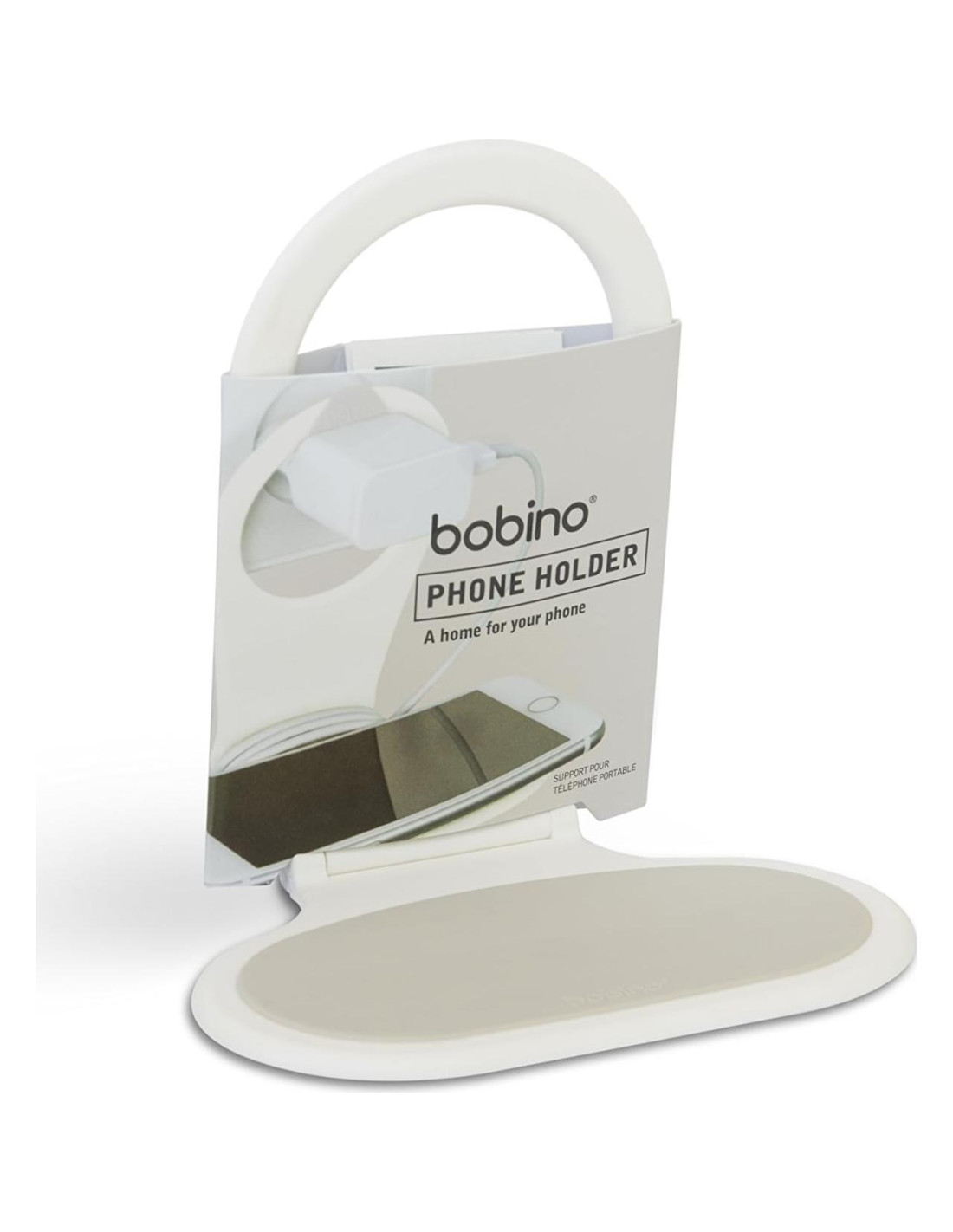 El SOPORTE PARA TELÉFONO Bobino ofrece un soporte seguro para tu teléfono mientras se carga. Se cuelga entre el cargador y la toma de corriente; proporciona una plataforma segura para tu teléfono (inteligente) y permite enrollar cables largos. La superficie tiene una almohadilla antideslizante y la bisagra plegable es práctica para viajar. El producto viene con una pestaña antideslizante adicional para adjuntar al agujero interior, que ofrece un agarre extra a cualquier cargador (plano).