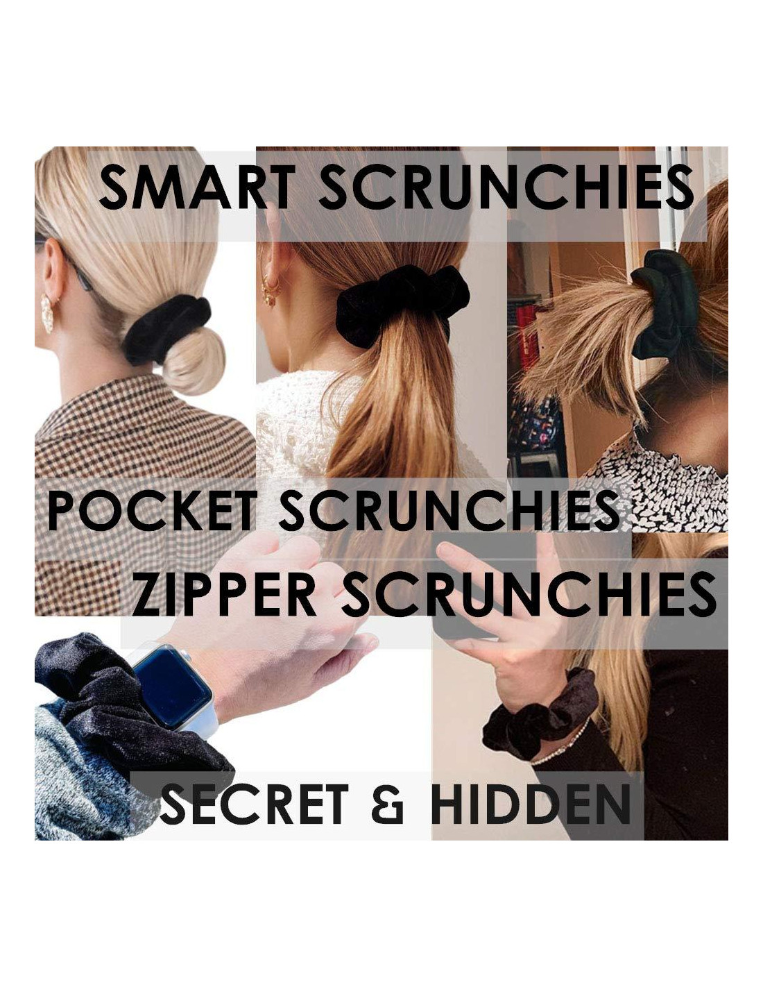 - DISEÑO MEJORADO La parte del Zipper está oculta para que permanezca invisible, Zipper Oculto de Acero Inoxidable Plateado, Scrunchie de Cabello de Fuerte Elasticidad, mantiene el cabello estiloso y tus cosas seguras e invisibles