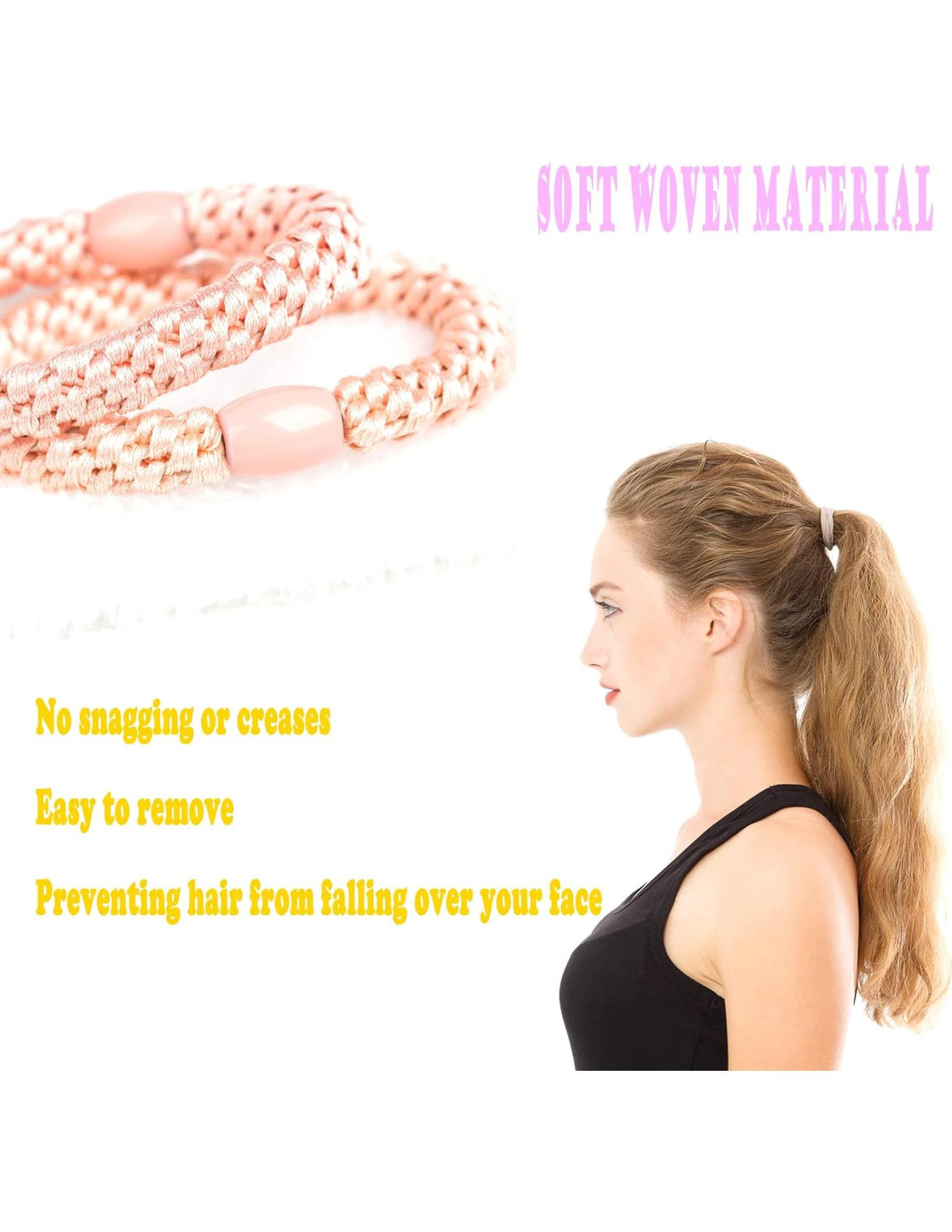 - Amplia Aplicación: Las bandas para coletas son aplicables para cabello fino, cabello de grosor medio, cabello grueso, cabello lacio, cabello rizado y cabello ondulado, etc. Puedes usar nuestras bandas para el cabello en varias ocasiones como deportes, fiestas, ceremonias, graduaciones, espectáculos en el escenario, citas y más.