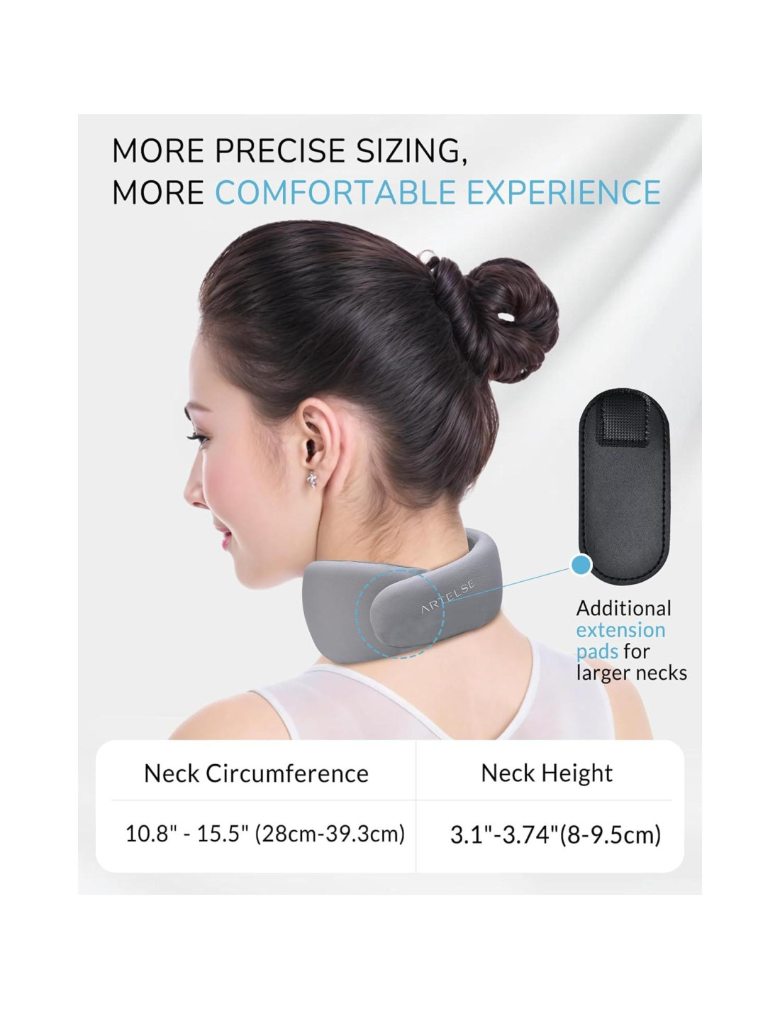 - [Ligera y Transpirable] : La Faja Cervical Artelse ha diseñado el último diseño transpirable, manteniendo tu cuello fresco y seco, incluso durante largas horas en la oficina o mientras duermes. Pesando solo 68 gramos (2.4 onzas), sin añadir ninguna carga al cuello, cómoda para usar todos los días.