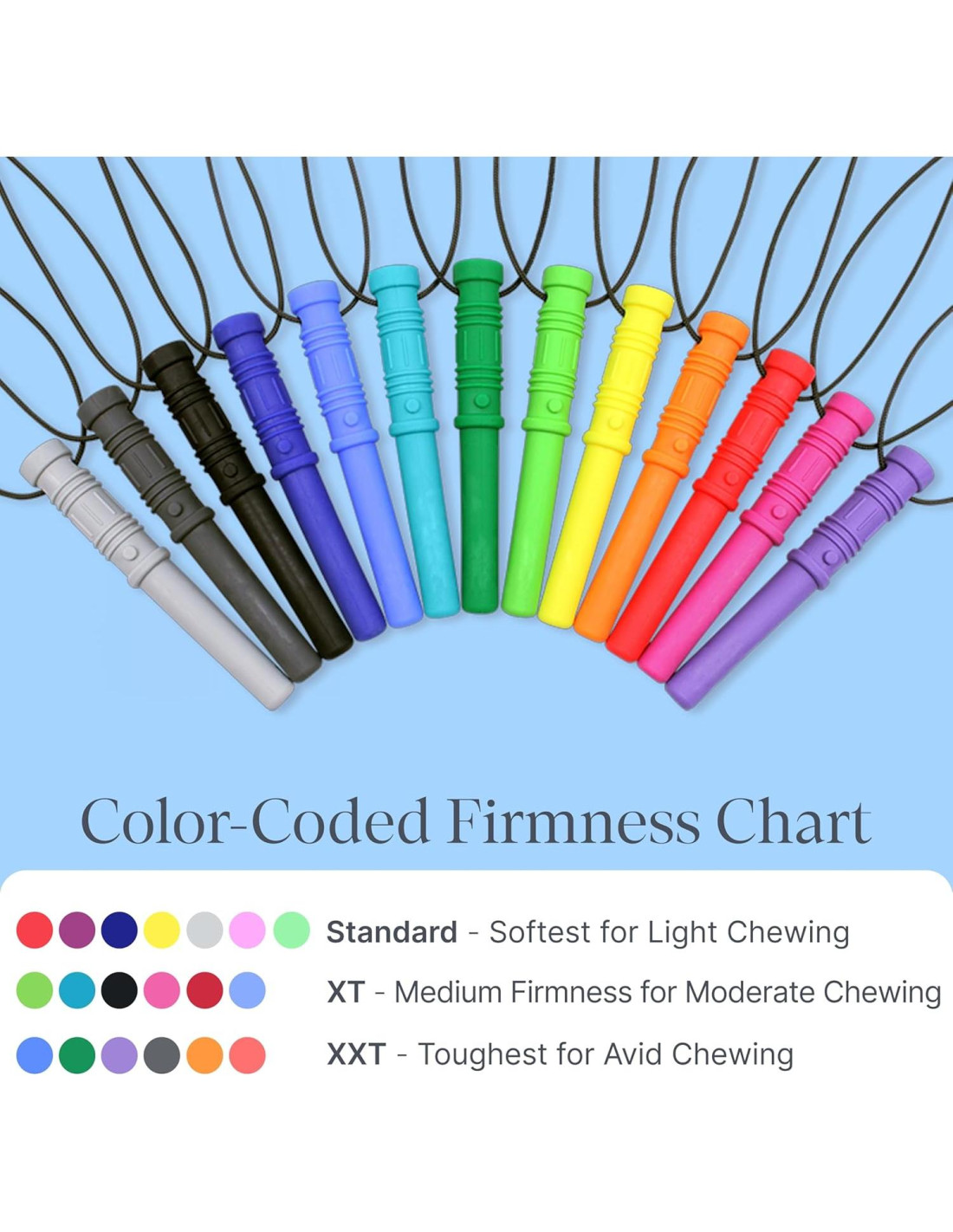 - USABLE Y DURADERO: Discreto y fácil de usar, los fidgets orales cuentan con un cordón ajustable de 30" (76.2 cm) con un cierre de liberación. La firmeza XT tiene una masticabilidad media y está destinada a masticar moderadamente. Edad 3 años en adelante