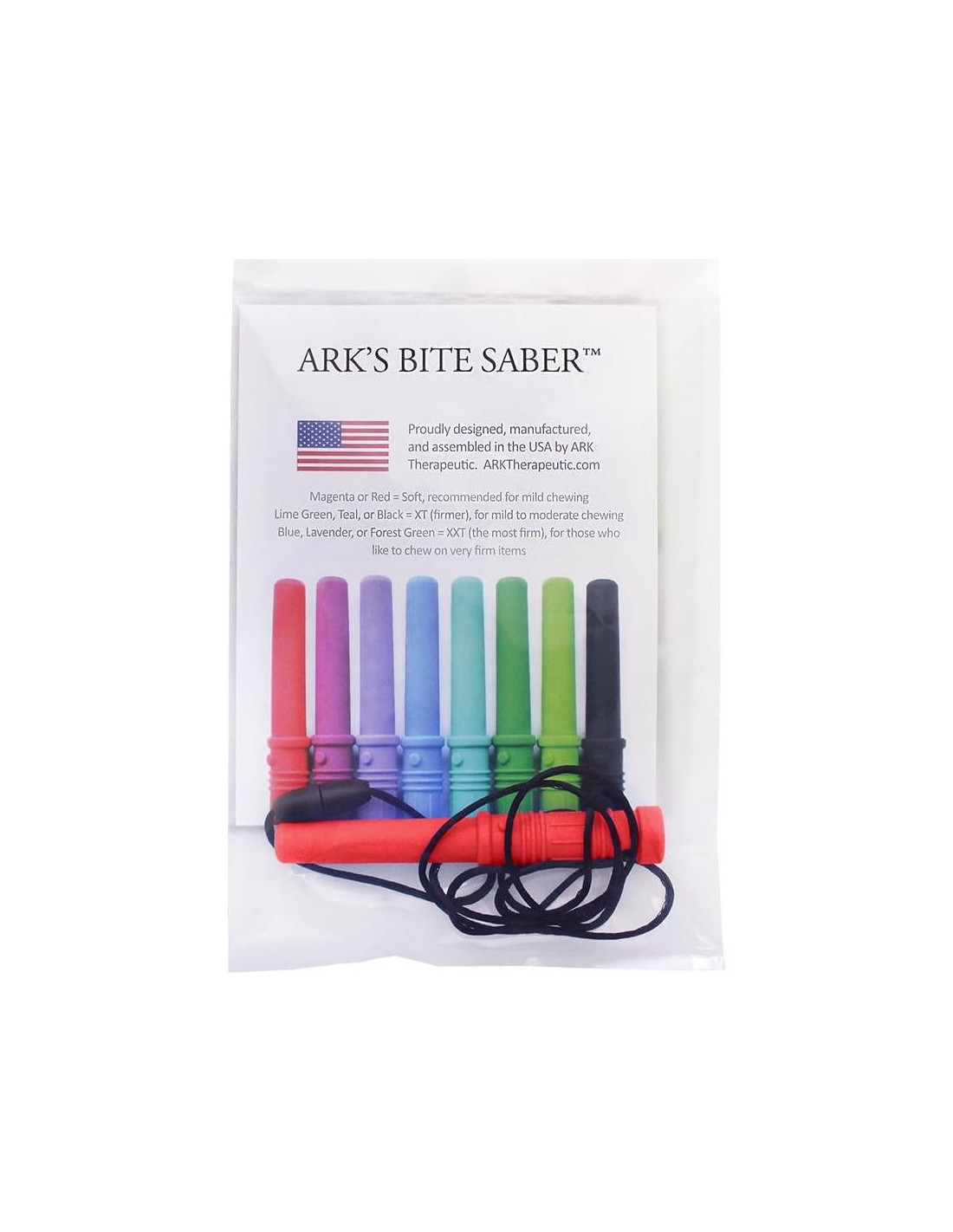 - ALIVIO SENSORIAL: Desarrollado por un patólogo del habla y lenguaje (SLP), el Collar Masticable ARK Bite Saber proporciona entrada oral sensorial para niños y adultos que mastican para mantenerse tranquilos y auto-calmarse.