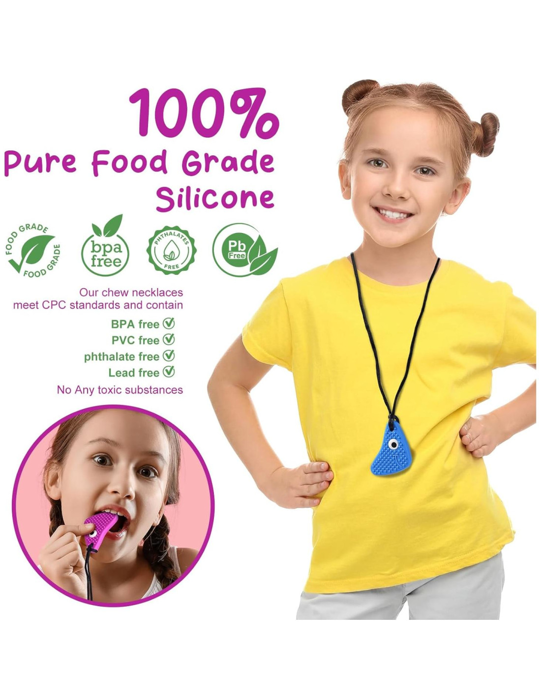 - Amplias Aplicaciones Este collar masticable como ayuda sensorial viene con un cordón ajustable que es cómodo de usar y un broche que se puede desconectar para hacer que estos juguetes masticables para autismo sean más seguros. Puedes regalar el chewelry de silicona a niños y adultos con autismo, ansiedad, TDAH o necesidades sensoriales para ayudarles a aliviar la irritabilidad y la ansiedad y mantenerse tranquilos para mejorar la concentración.