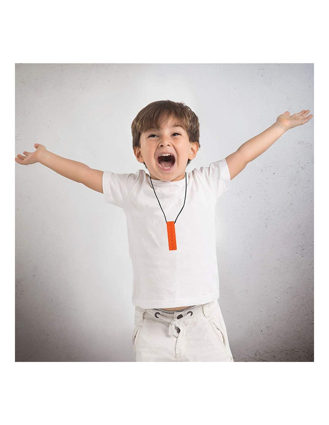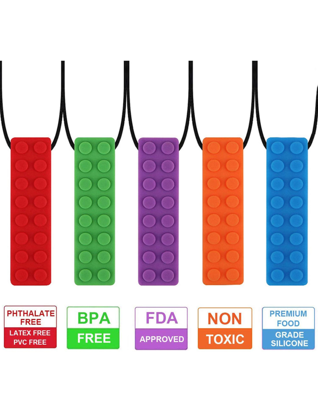 - [MATERIAL SEGURO] Collar masticable de silicona 100% de grado alimenticio que está libre de BPA, látex, ftalatos, cadmio, plomo o metales. Los collares masticables de silicona de alta calidad son completamente seguros de usar. El collar masticable sensorial es fácil de limpiar en el lavavajillas o a mano / enjuagar solo con agua. A prueba de congelador, estos collares sensoriales pueden ser un regalo perfecto para niños con necesidades sensoriales.