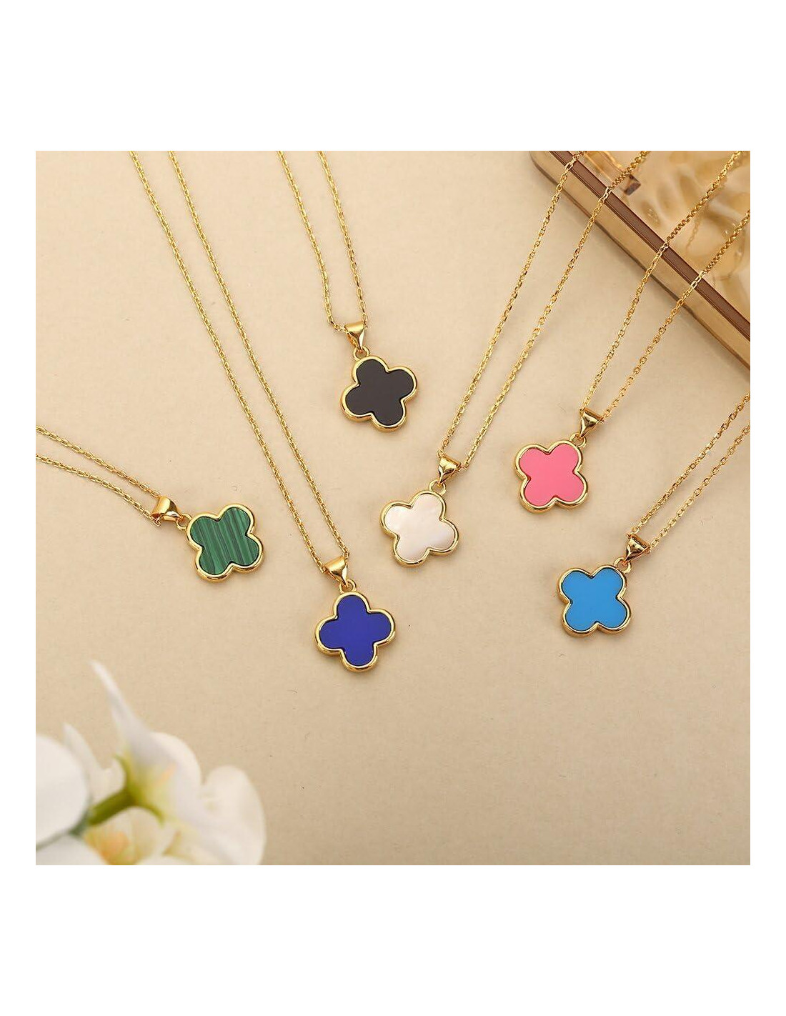 - DISEÑO ELEGANTE: Eleva tu estilo con nuestros exquisitos collares de trébol para mujeres, que presentan un colgante de trébol de doble cara hecho de madreperla. Cada encanto es cuidadosamente seleccionado por su calidad excepcional, disponible en una variedad de colores impresionantes: blanco perla, negro clásico, azul claro, azul oscuro, verde malaquita y rosa. ¡Expresa tu estilo único con esta pieza versátil que complementa cualquier atuendo!