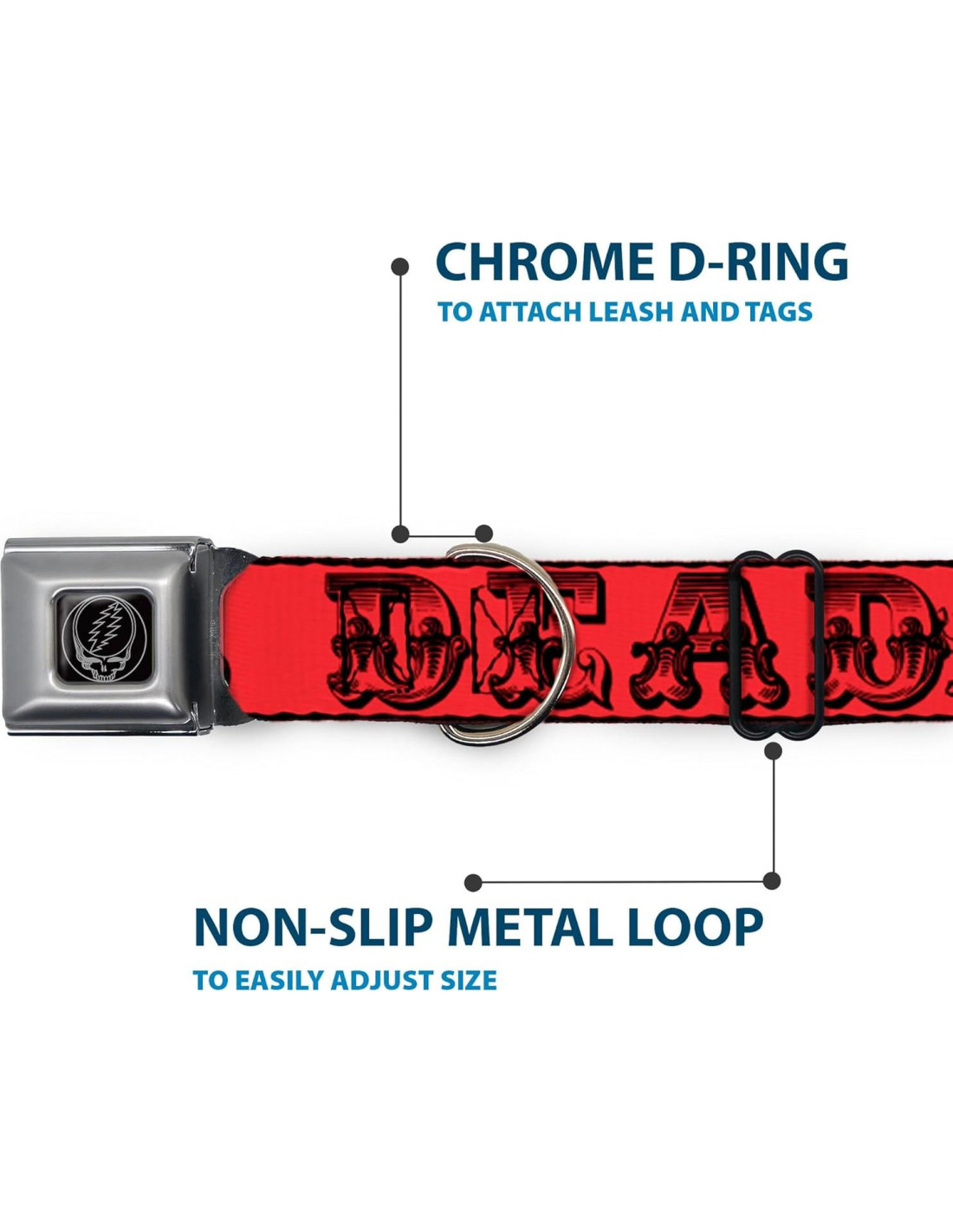 ¡Tu perro será el tema de conversación de la ciudad cuando la gente note que lleva puesto este increíble Collar para Perros con Cinturón de Seguridad! Hecho de poliéster de alta densidad y componentes de acero duraderos, este collar está diseñado para durar. Presenta una hermosa y vibrante obra de arte. La hebilla es una hebilla de cinturón de seguridad auténtica en miniatura, por lo que presionas el botón central para liberar el broche. Este producto está ensamblado en los EE. UU. por Buckle-Down Inc. y tiene licencia oficial de Grateful Dead.