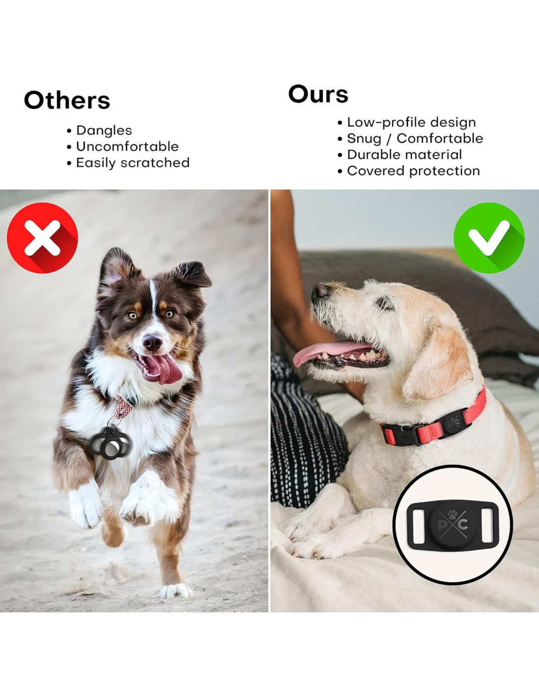 - SEGURO PARA PERRITOS Y AMIGABLE CON IPHONE. ¿Cansado de perseguir a tu perro cuando se escapa? Simplemente sujeta tu Apple AirTag al Soporte para Collar de Perro Pup Culture AirTag para rastreo de perros 24/7, directamente desde tu iPhone. El soporte para collar de perro con AirTag no se cuelga y se sujeta a la correa de tu mascota, así que no tienes que preocuparte de que tu AirTag se caiga de tu amigo peludo