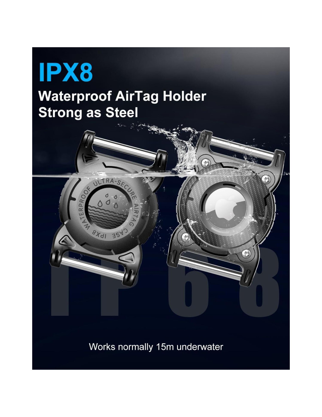 - Protección IP68 e Impermeable para Perro Airtag: El soporte para collar de perro Airtag tiene un nivel de protección estándar internacional IP6 y es impermeable IP8. Los airtags no tienen fugas ni daños por agua durante 30m (98 pies) de profundidad bajo el agua. El Airtag para perro es impermeable, resistente a rayones y a impactos.
