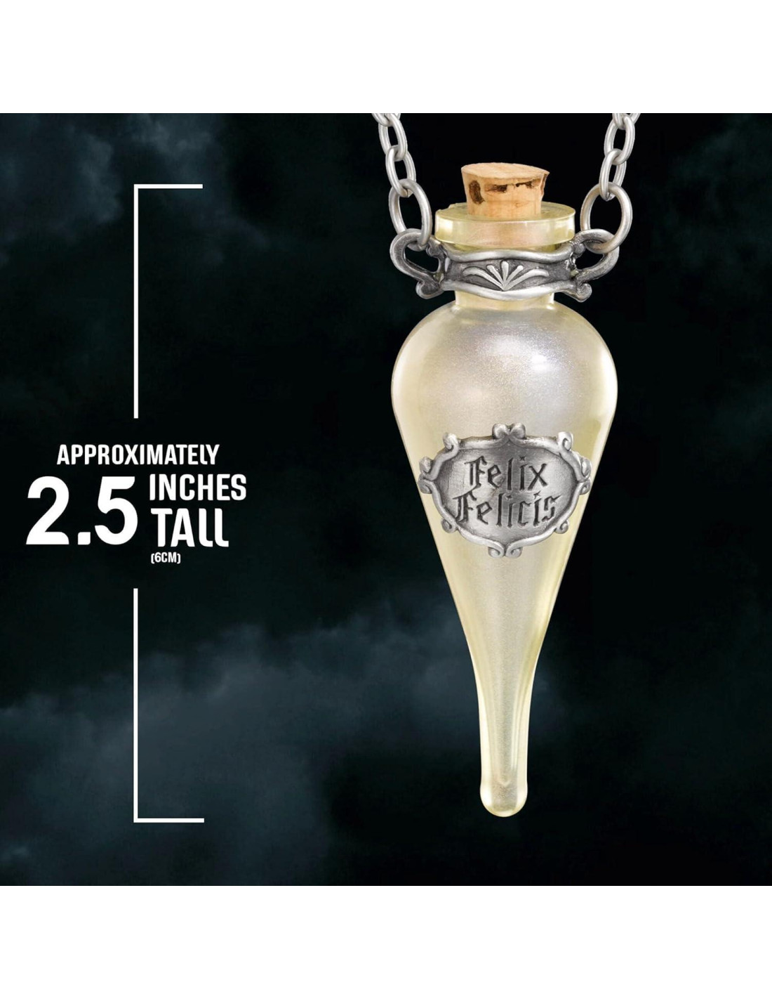 Botella de poción hecha de vidrio y adornos de metal. Incluye cadena de 18 pulgadas (45,72 cm) y exhibición para coleccionistas