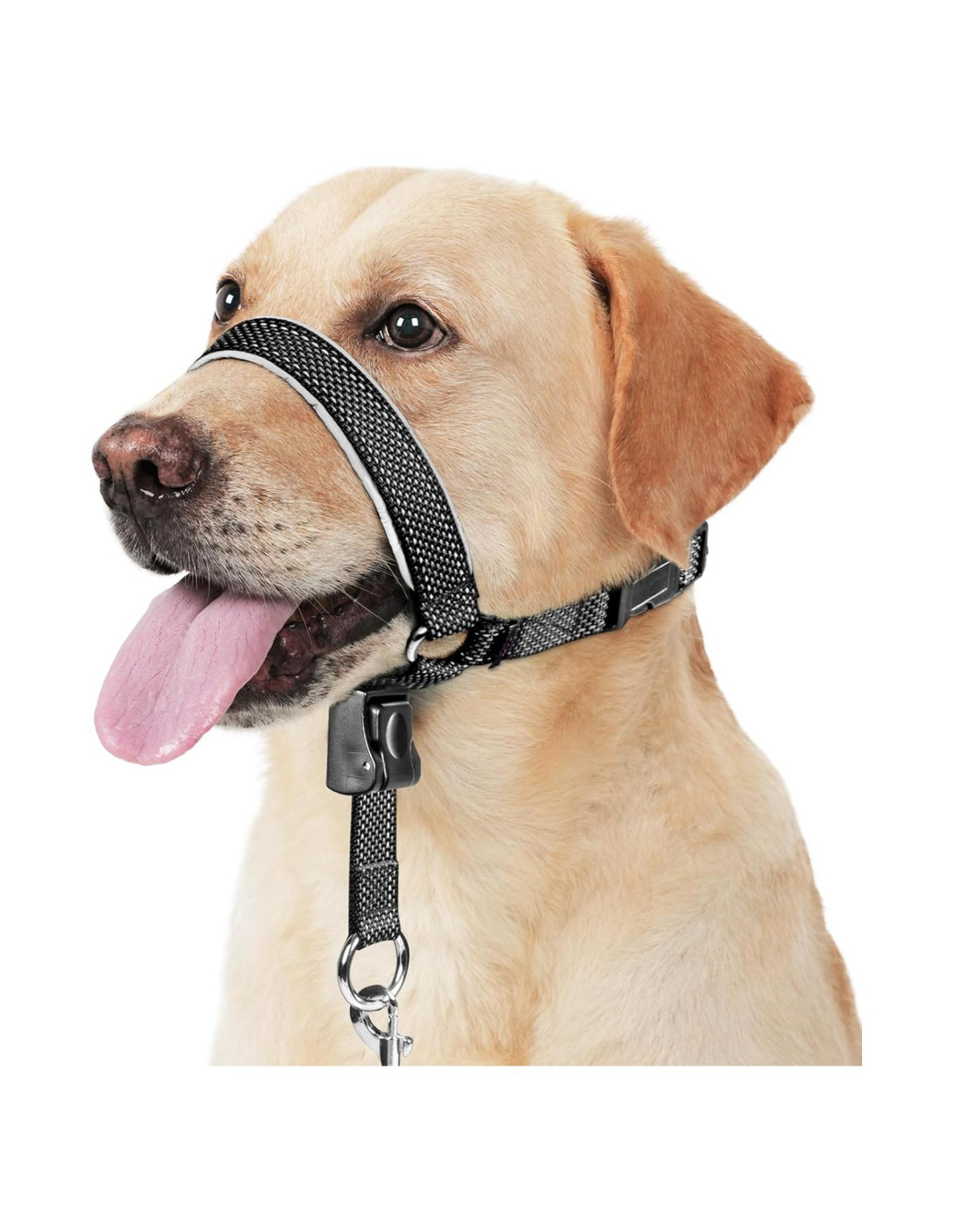 - Reflectante para seguridad: Un collar de cabeza para perros sin tirones con tiras reflectantes es esencial para aquellos que pasean frecuentemente a sus perros o van a aventuras al aire libre nocturnas. El collar de cabeza sin tirones para perros mejora la visibilidad en condiciones de poca luz, proporcionando seguridad adicional para ti y tu mascota.