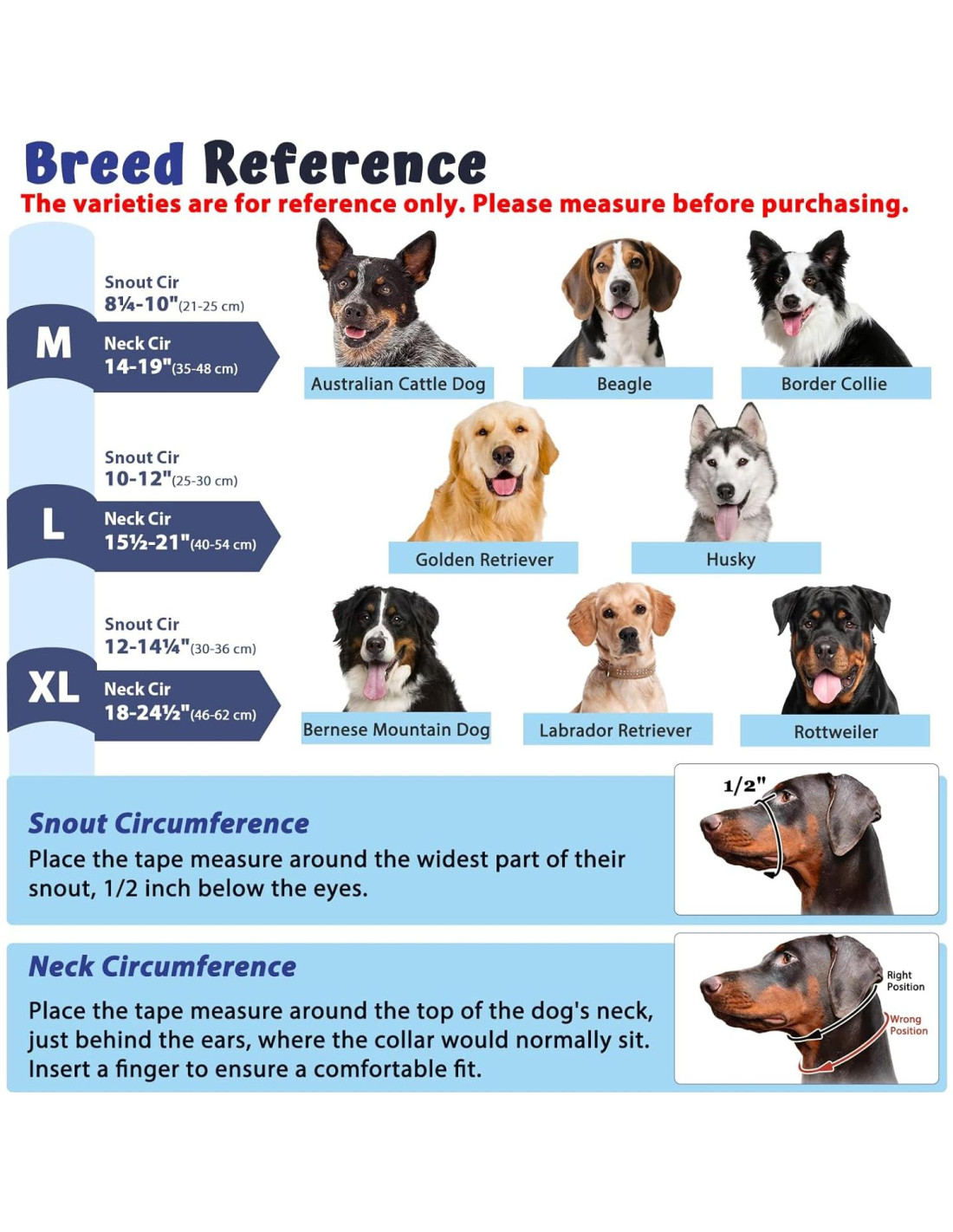 - Adecuado para Perros de Hocico Largo: El collar de cabeza tamaño M es adecuado para circunferencia de hocico de 8"-10" (21-25.4 cm) y circunferencia de cuello de 14"-19" (35.6-48.3 cm), como Border collie, Beagle. Las sugerencias de razas son solo para referencia. Un collar suave de Barkless no es adecuado para perros de hocico corto como los bulldogs. Recomendamos medir la circunferencia de la cabeza y el hocico de tu perro antes de comprar un arnés de cabeza, puedes encontrar nuestra guía de tamaños en las imágenes y descripciones.