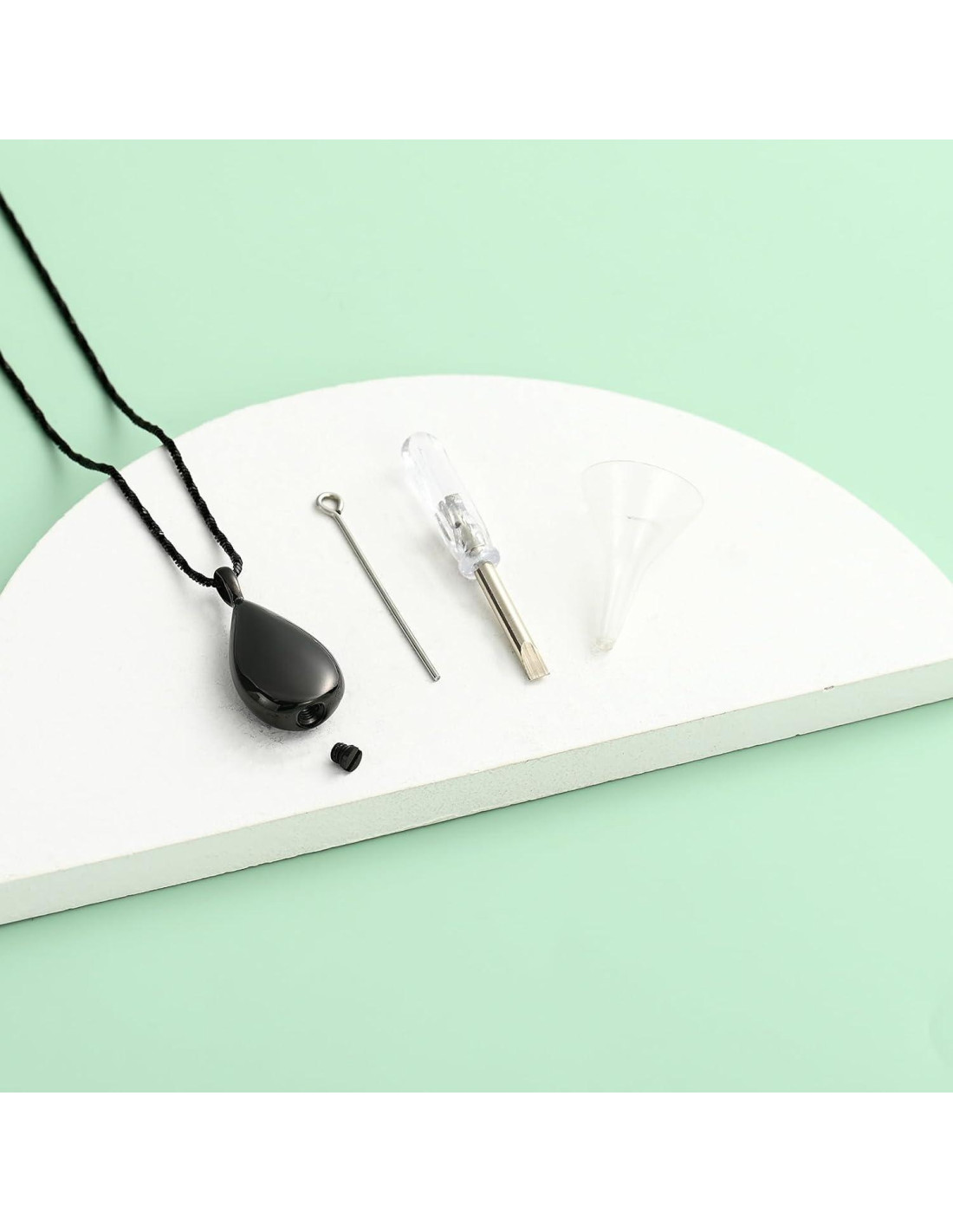 - [Paquete de Joyería de Cremación para Cenizas] El Collar de Locket de Urna en Forma de Gota viene con una bonita caja de regalo + cadena de 20'' (50.8 cm) + cadena de extensión de 2'' (5.08 cm) + kit de llenado. Este Colgante de Cenizas de Recuerdo merece tu amor, deja que tu ser querido descanse en tus brazos.