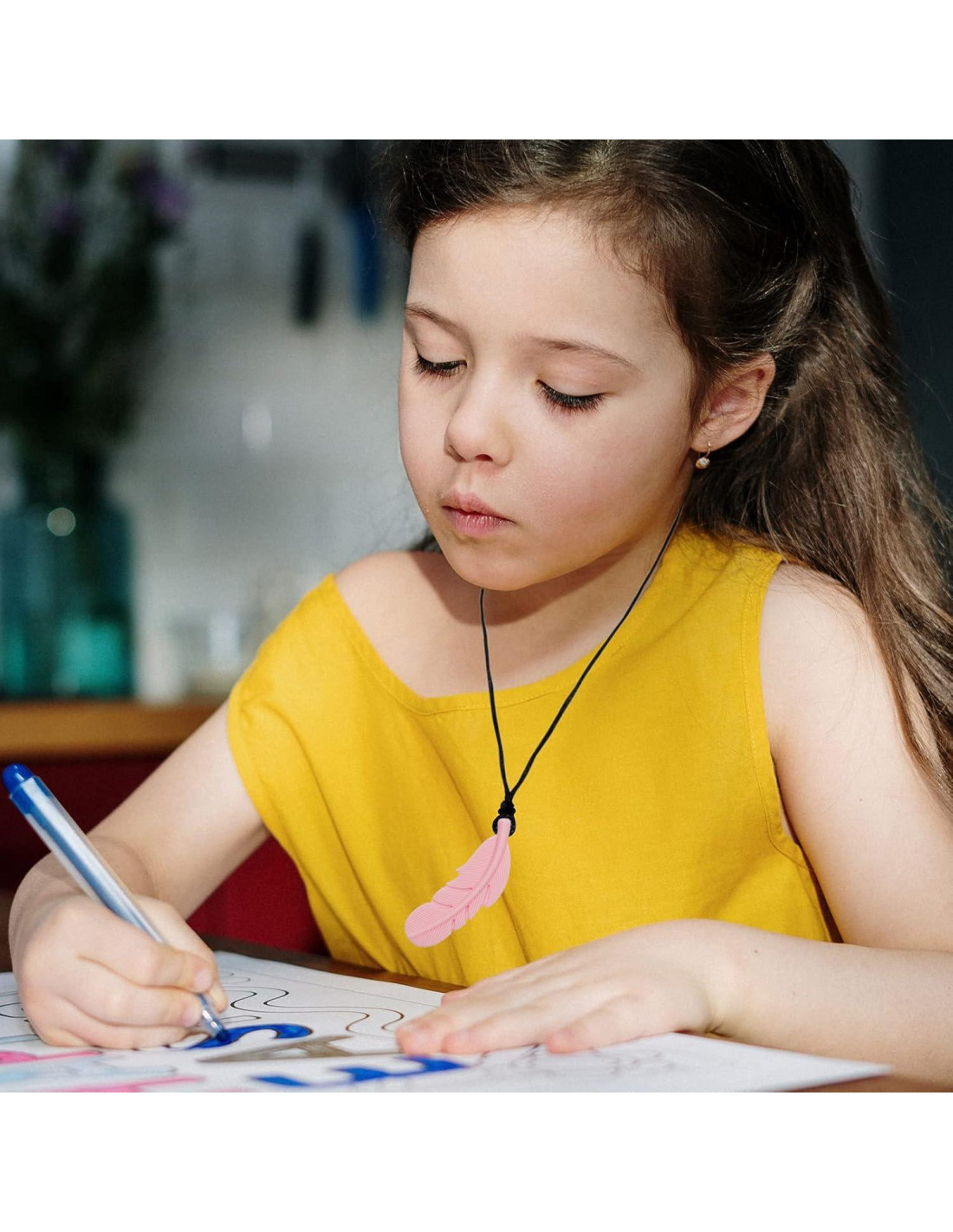 - Estimulación Sensorial - El collar masticable puede promover la atención y nuestro juguete masticable en forma de pluma puede ayudar a su hijo a aliviar la ansiedad, reduciendo la inquietud. Para niños con TDAH, SPD, necesidades especiales o niños con trastorno de procesamiento sensorial.