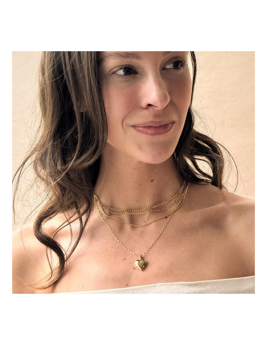 - DETALLES DEL DISEÑO: Un locket romántico y atemporal en una silueta moderna y delicada. El locket funcional en forma de corazón cuelga de una cadena delicadamente torcida. Lo suficientemente versátil como para usarse solo o superponerse como el complemento perfecto para tus collares favoritos. Ajustable entre 45.72-53.34 cm. El locket mide 1.27 cm.