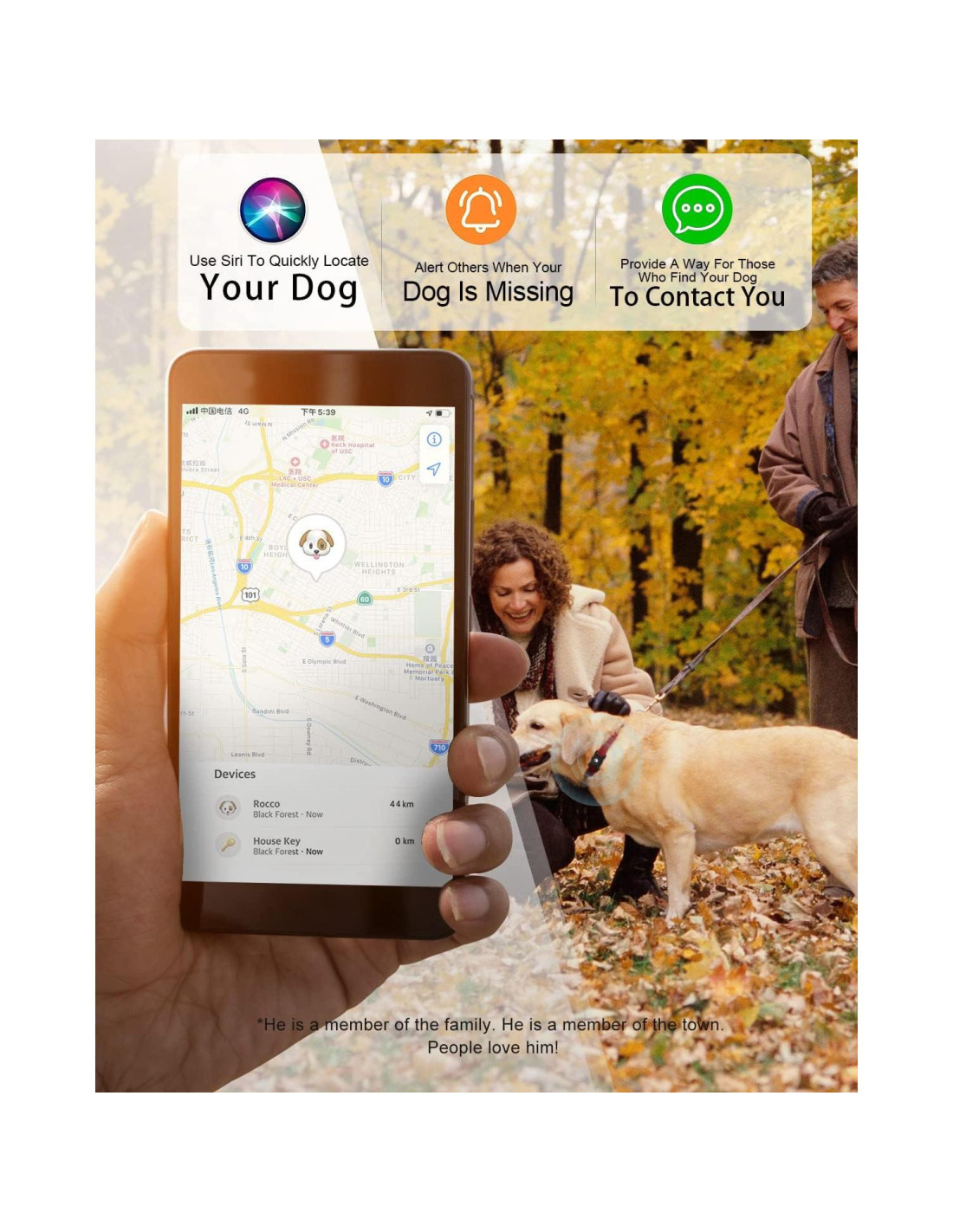 Creemos que los perros son las únicas mascotas que te aman más que a sí mismos. Gracias a ti, somos más felices. Somos una familia que nunca estará separada. ¡Gracias por estar ahí, dándome calor y belleza! Si me faltas, ¡esa sería mi mayor dolor y arrepentimiento! Afortunadamente, Apple hace el AirTag, un rastreador GPS portátil. En YILIUOER, nos enfocamos en proporcionar soluciones para las necesidades diarias de nuestros clientes, montando fácilmente el Airtag en perros/gatos, nuestras fundas de Airtag se adaptan a la mayoría de los collares y mantienen un perfil bajo en el collar de tu perro. Diseñado específicamente para perros, pero se puede usar para adjuntar el Airtag a otros accesorios con correas adecuadas. ¡Comienza ahora, conecta tu Air Tag a tu iPhone y ve dónde está jugando tu cachorro! (Airtag no está incluido en el soporte de collar de perro Airtag)