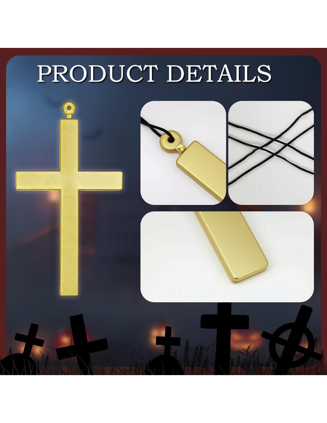 Haz una impresión audaz en tu próximo evento de disfraces o celebración festiva con estos accesorios de cruz de plástico hueco, ligeros y fáciles de usar o colgar, perfectos para disfraces de Halloween, decoraciones temáticas de Pascua, eventos de cosplay o actuaciones teatrales. El cordón negro incluido permite un uso instantáneo como collar o accesorio de pared. Ya sea que te estés disfrazando o decorando, este accesorio añade un toque dramático final.