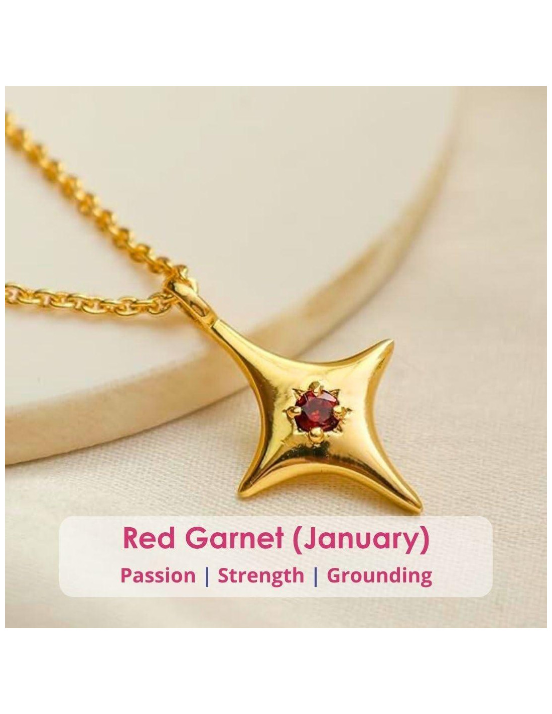 - Diseño de Colgante Estrella del Norte con Granate Rojo Presentando una vibrante piedra preciosa de granate rojo en un motivo celestial de estrella del norte, este colgante simboliza pasión, fuerza y dirección. Una pieza hermosa y significativa para aquellos que aprecian la joyería inspirada en lo celestial.