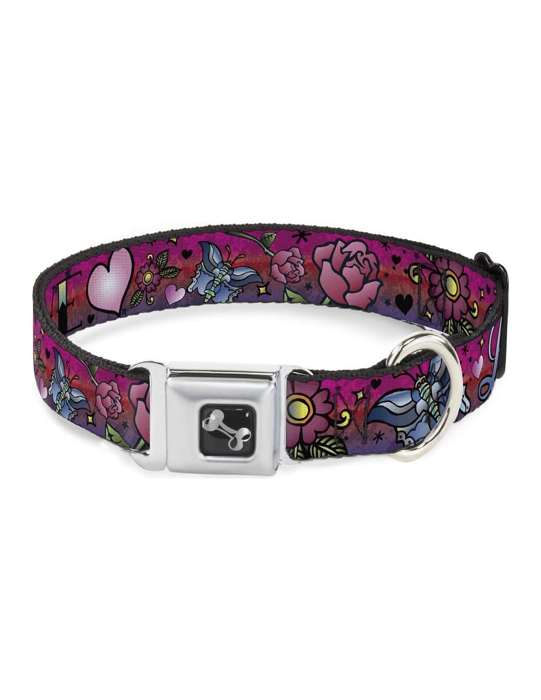 - Collar de Perro Hebilla de Cinturón de Seguridad Buckle-Down - Amor Amor Rosa - 1 Pulgada Ancho - Se Ajusta a Cuellos de 9-15 Pulgadas - Pequeño
