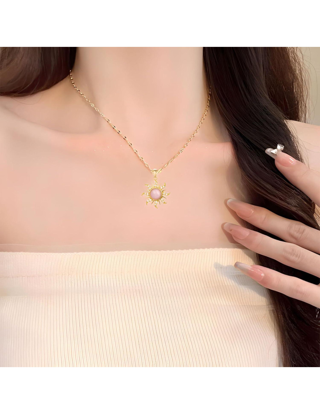 - [Adornos de Cristales Radiantes] Adornado con una variedad de cristales brillantes, este collar de sol ópalo muestra una excepcional brillantez y claridad. La meticulosa artesanía asegura que capte la luz de manera hermosa, convirtiéndolo en un accesorio llamativo para cualquier ocasión