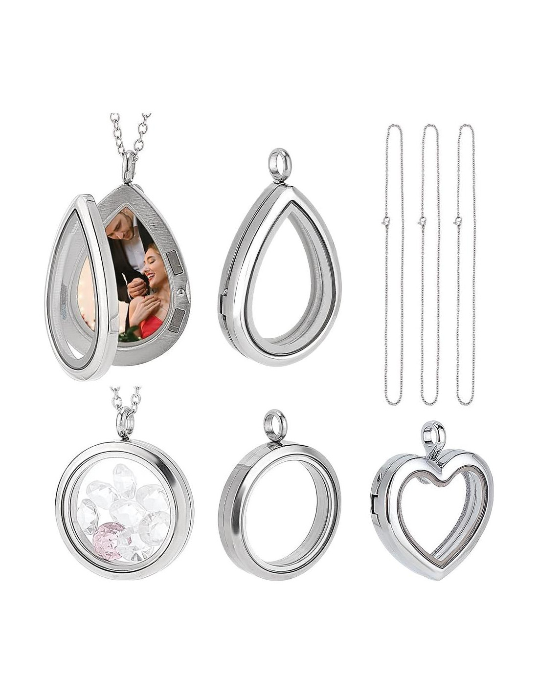 Collar con Colgante de PH PandaHall El collar con colgante tiene un diseño de cierre de bloqueo que se puede abrir para guardar fotos, etiquetas y otros artículos personalizados. Es una gran opción ya sea que se lo des a tus seres queridos, amigos, amantes o que lo uses tú mismo. Tamaño: 3 juegos de collar, tamaño de los colgantes en forma de lágrima aproximadamente 42x28x7 mm, tamaño de los colgantes en forma de corazón aproximadamente 34x30x6.3 mm, tamaño de los colgantes redondos planos aproximadamente 36.5x30x6.5 mm, cada colgante viene con una cadena de collar de aproximadamente 17.7 pulgadas (45 cm)