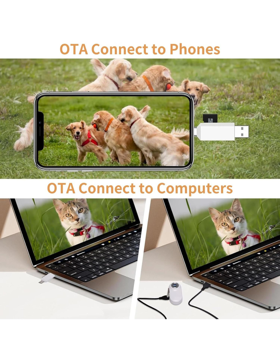 - [Soporte OTG para Compartir Instantáneamente] : Conéctate fácilmente a la cámara a tu teléfono a través de OTG para compartir fotos instantáneamente y gestionar archivos. Permitiéndote usar el collar de cámara para gatos en cualquier lugar.