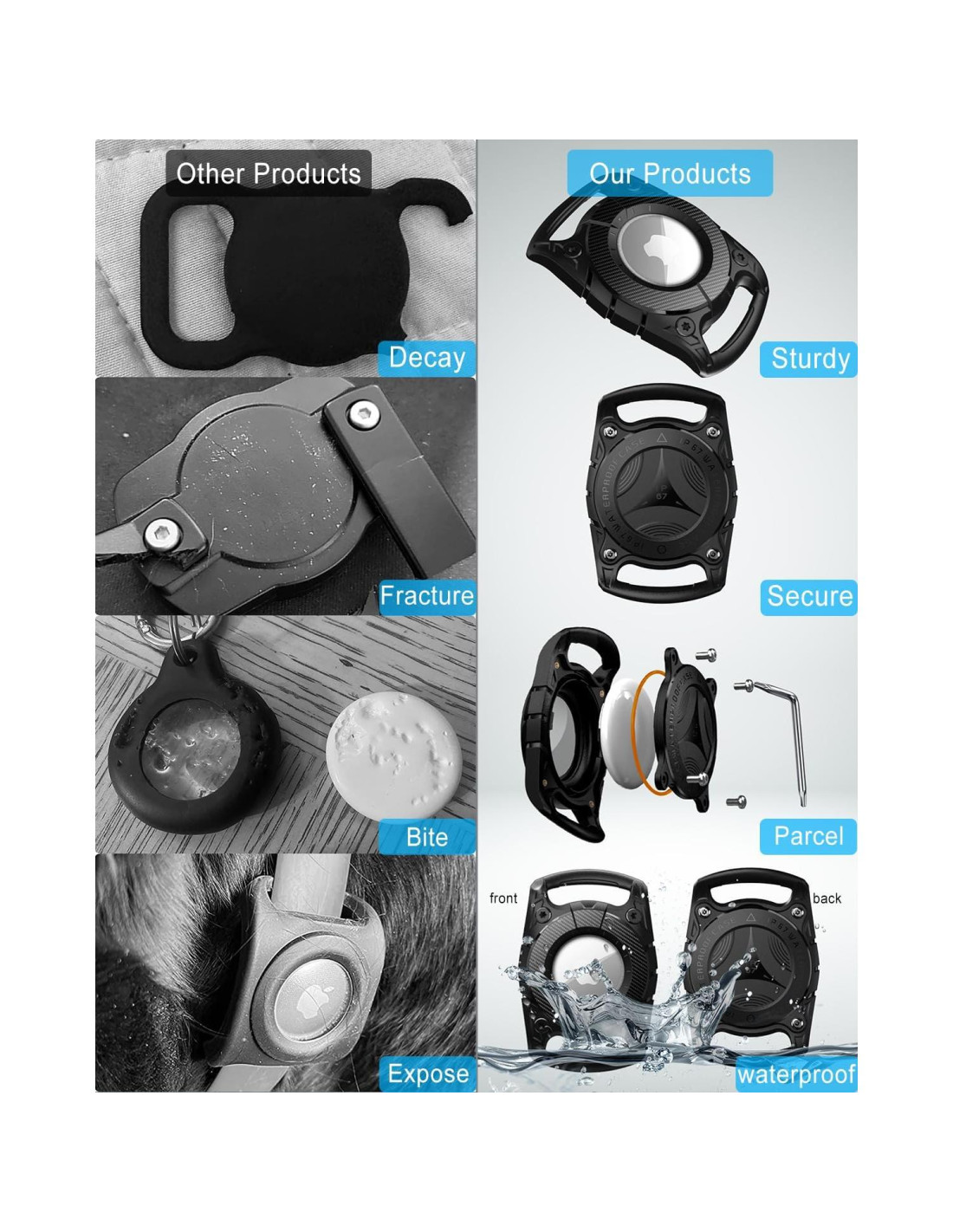- [Soporte para Perro Air Tag Ultra Duradero] Soporte para collar de perro Air Tag con 4 tornillos especiales para cerrar, anillo de sellado de silicona en el medio, los air tags nunca se caerán del soporte para collar de perro air tag. Es firme y sellado, con antirrobo.