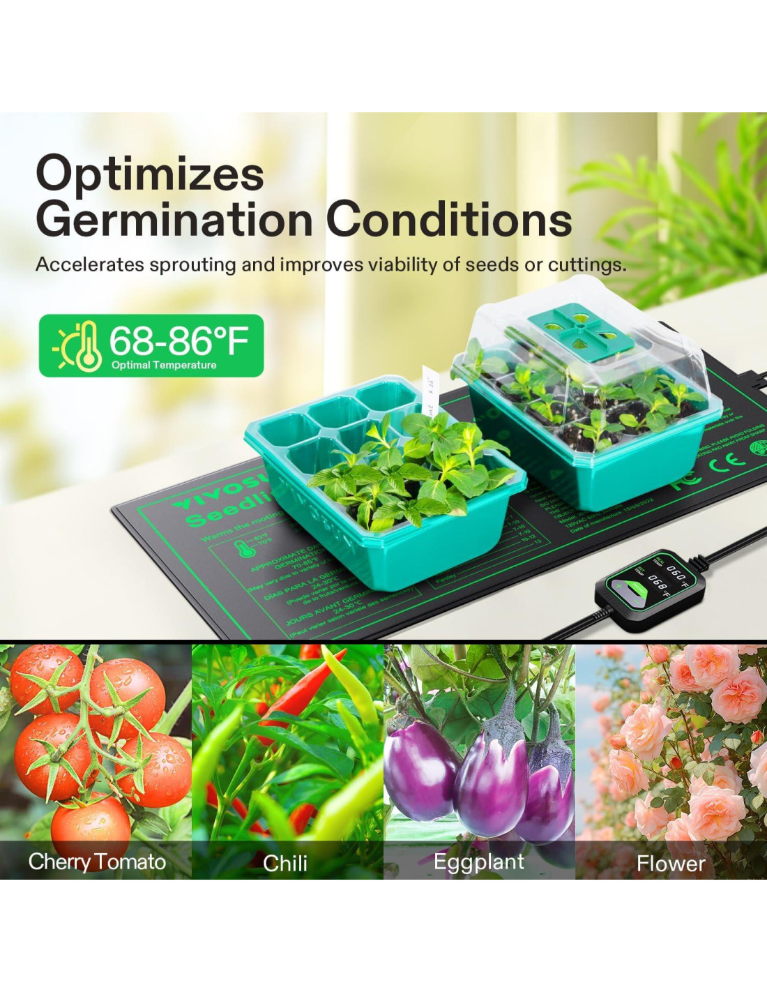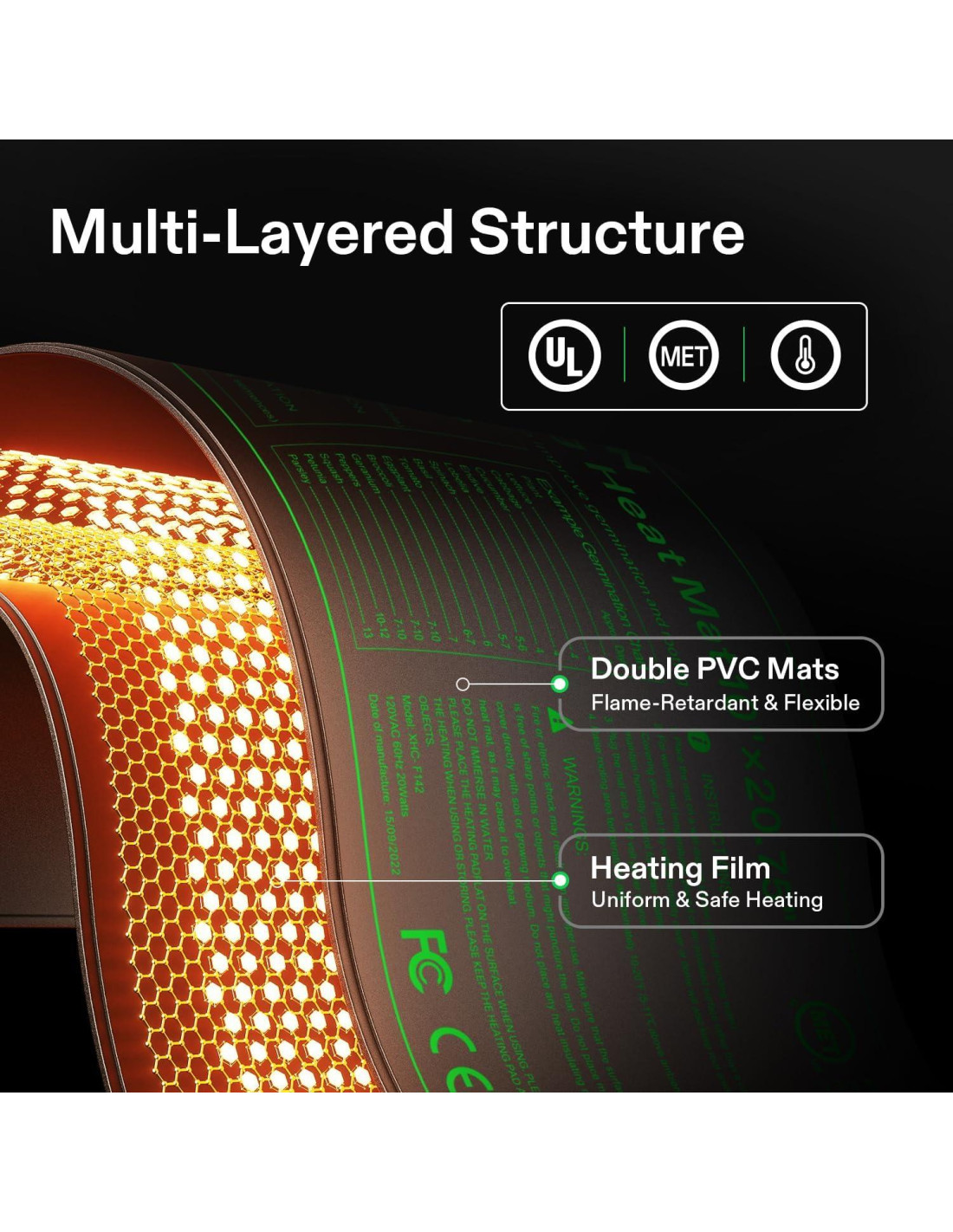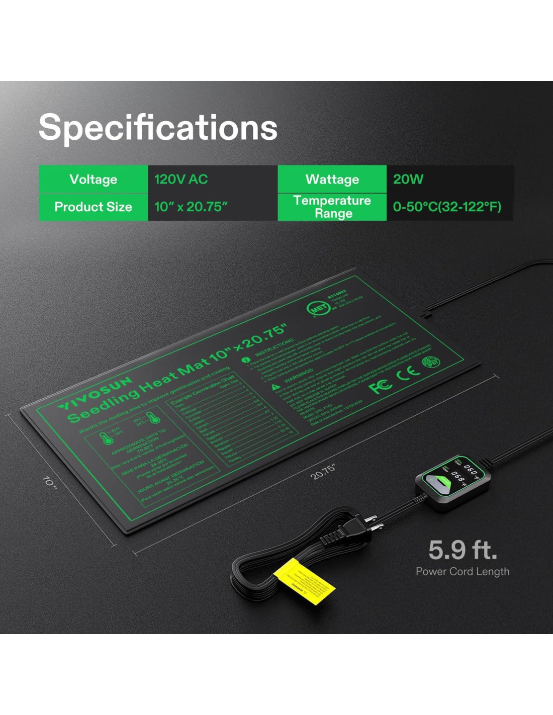 - Calefacción Uniforme en un Área de Calefacción Más Grande: Esta almohadilla térmica utiliza tecnología avanzada de calefacción por infrarrojos lejanos para proporcionar calor consistente y uniforme; Esta tecnología expande el área de calefacción para crear condiciones más óptimas para acelerar el crecimiento de las plantas; La película de calefacción duradera y reforzada viene con doble aislamiento para asegurar que el calor no queme las raíces