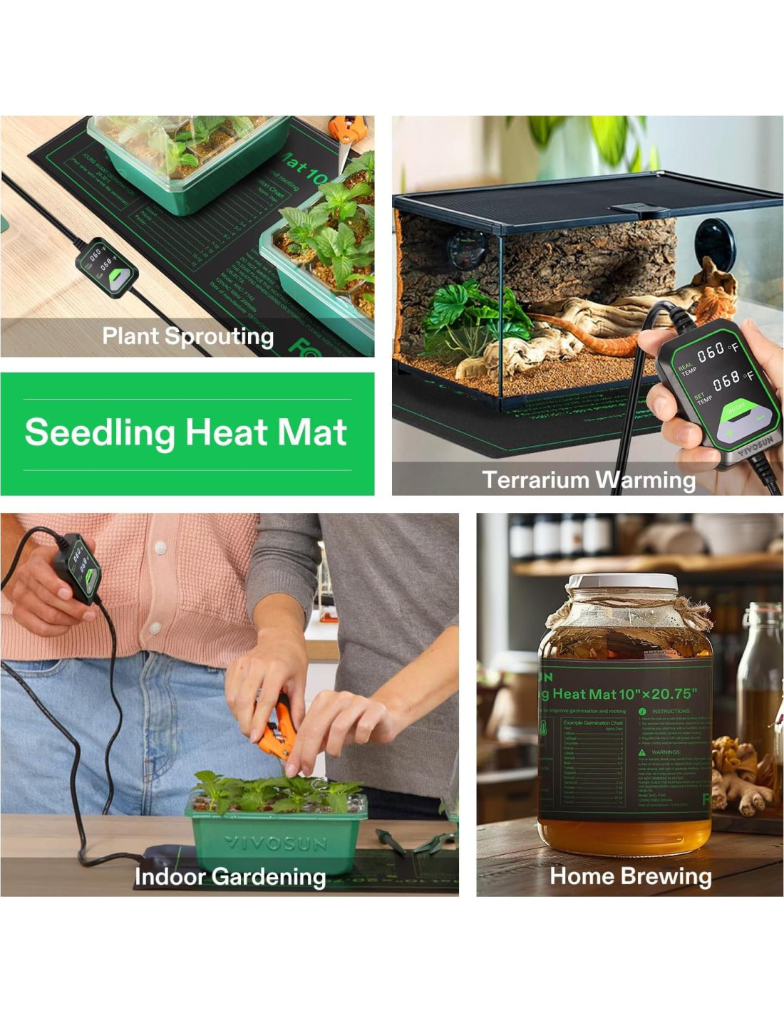 ¿Quiénes somos? En Vivosun, nuestra misión es empoderar a cada cultivador para que cultive lo que le apasiona. Estamos dedicados a avanzar en la tecnología hidroponica que nutre el crecimiento, alimenta el entusiasmo y apoya a la diversa comunidad de cultivadores en su búsqueda de lo que aman: ¡cultivar verde! Las alfombrillas térmicas para plántulas de Vivosun proporcionan una conversión de calor eficiente y una distribución uniforme, impulsando el crecimiento de las plantas en la etapa inicial. La jardinería en interiores puede ser compleja. La simplificamos integrando tecnología que optimiza la luz, el flujo de aire y el control ambiental. Nuestros sistemas inteligentes facilitan la jardinería, ayudando tanto a principiantes como a expertos a lograr plantas prósperas sin esfuerzo. Vivosun combina innovación, calidad y sostenibilidad. Nuestros productos inteligentes, como Vgrow, AeroLight, AeroZesh y GrowHub, optimizan la jardinería con controles automatizados y características de eficiencia energética, asegurando mejores resultados de crecimiento mientras se reduce el impacto ambiental. Conjunto de Alfombrilla Térmica para Plántulas Alfombrilla Térmica para Plántulas Alfombrilla Térmica para Plántulas Alfombrilla Térmica para Plántulas Controlador de Termostato Alfombrilla Térmica para Plántulas, Paquete de 2