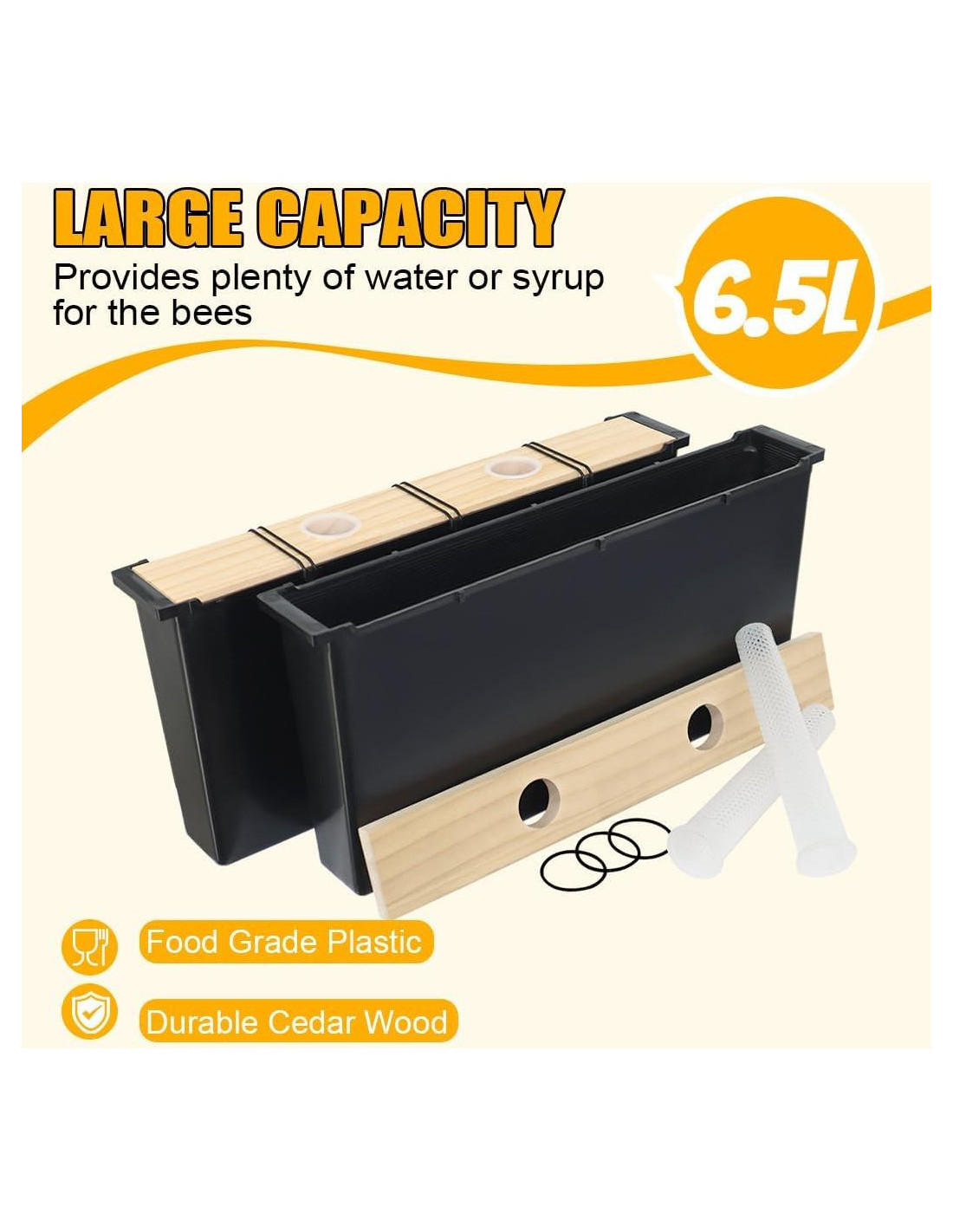 Tipo de artículo: Alimentador de Abejas Material: Plástico de Grado Alimenticio y Madera de Cedro Lista del paquete: 2 x Alimentador de Abejas 2 x Tapa 4 x Jaulas de Alimentación 6 x Gomas Nota: Al llenar agua azucarada o agua más tarde, por favor preste atención a si hay abejas dentro y tenga cuidado de no ahogar a las abejas. Los alimentadores de marco de colmena MayBee están diseñados para conveniencia y facilidad de uso. A diferencia de otras opciones en el mercado, nuestro Alimentador de Abejas viene completamente ensamblado, ahorrándole tiempo y esfuerzo valiosos. Los alimentadores de abejas miden 19" (48,26 cm) x 3.14" (7,99 cm) x 8.46" (21,5 cm) y se ajustan a cajas de marco profundo estándar. Los alimentadores de marco de colmena MayBee proporcionan una alimentación abundante para sus colmenas. Un diseño cuidadoso asegura que las abejas tengan fácil acceso al jarabe, minimizando el derrame y el desperdicio. La alimentación adecuada es crucial para el bienestar de sus abejas. Invierta en nuestro confiable Alimentador de Colmena para proporcionar a sus abejas la nutrición que necesitan para una colmena próspera. Estamos comprometidos a garantizar su satisfacción con nuestro producto. Si tiene alguna pregunta o inquietud, estamos comprometidos a abordar cualquier consulta o preocupación dentro de las 24 horas. Respaldamos la calidad de nuestro Alimentador de Colmena y ofrecemos un soporte postventa confiable para una experiencia de compra sin preocupaciones.