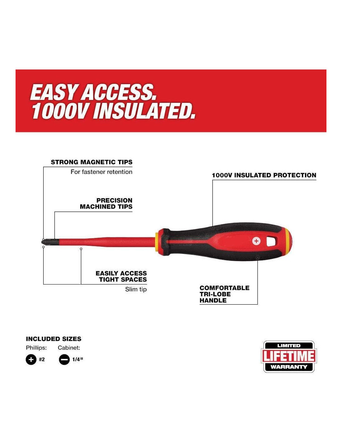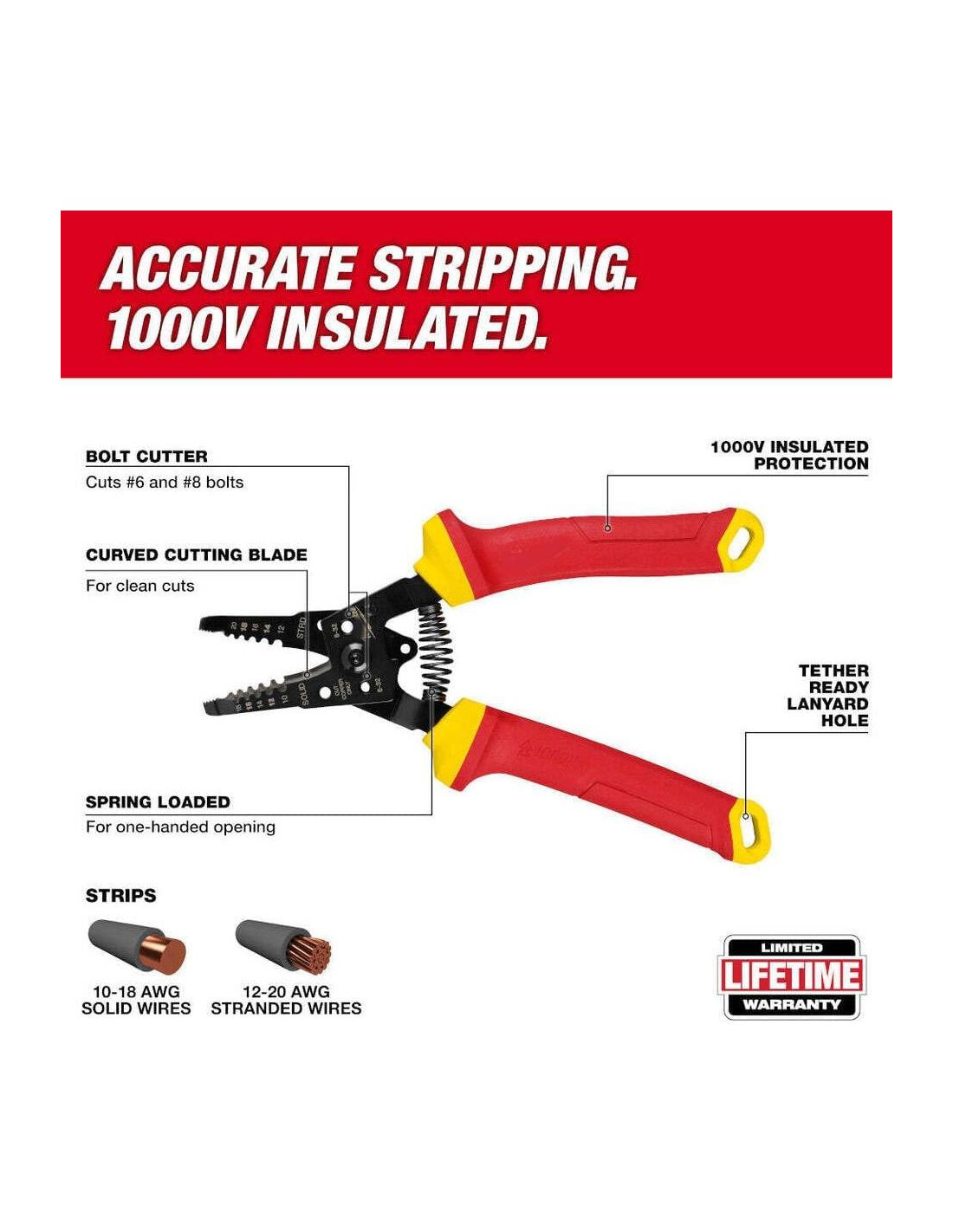 Sobre este artículo Para 48-22-2215 1000V Electricistas aislados Juego de herramientas manuales - 5 PC, destornilladores, con caja de herramientas (1) Juego de destornilladores de punta delgada aislados de 1000 V (48-22-2207) (1) Alicates Lineman's de 9 pulgadas (22.86 cm) aislados de 1000 V (48-22-2209) (1) Alicates de corte diagonal de 8 pulgadas (20.32 cm) aislados de 1000 V (48-22-2208) (1) 1000 V Aislado 10-2 Pelacables y cortador de 0 AWG (48-22-2214)